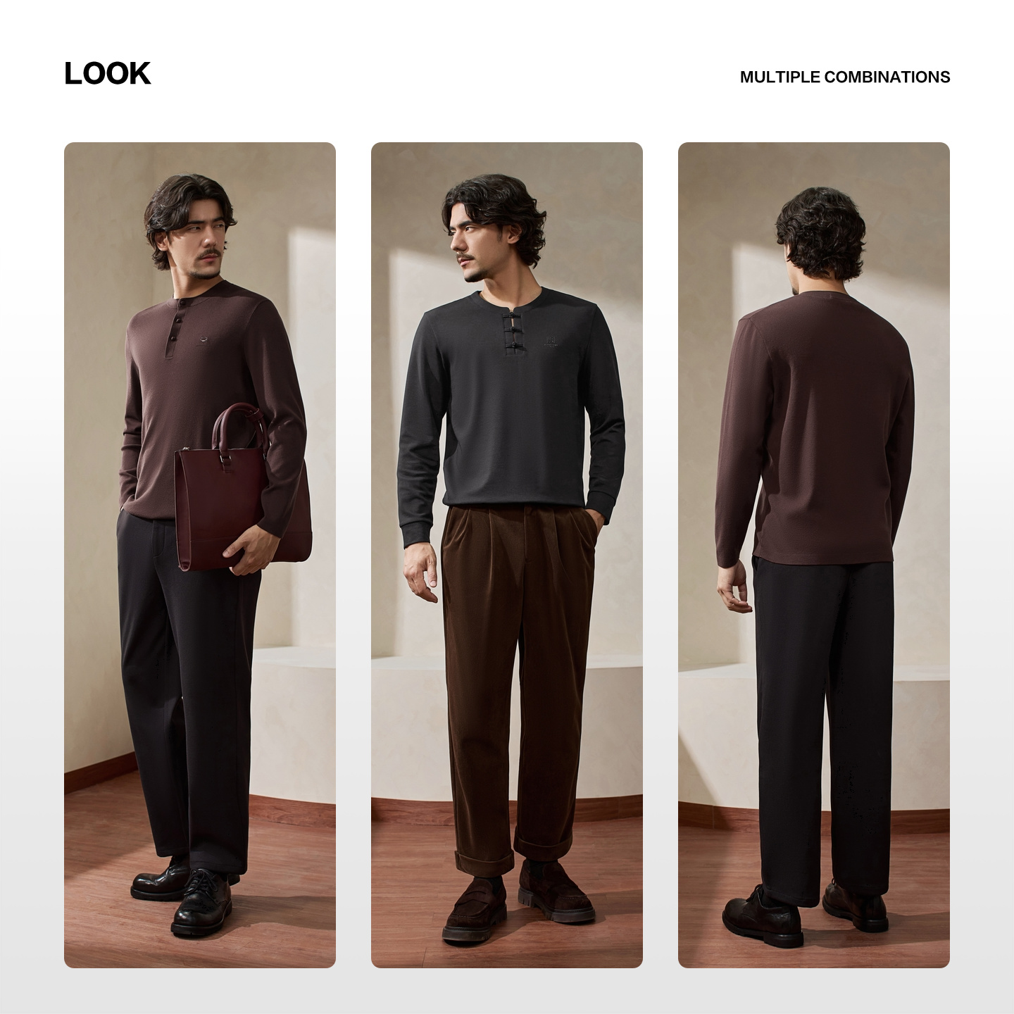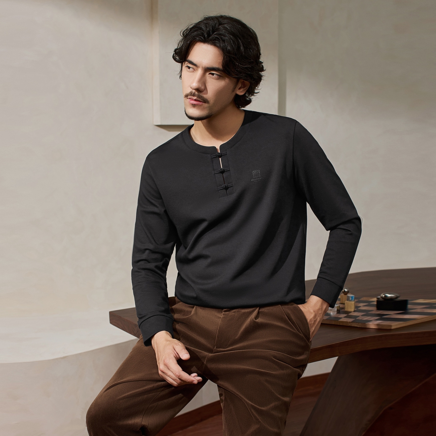 【国风新中式/含羊毛】柒牌卫衣男士秋季休闲圆领百搭长袖上衣