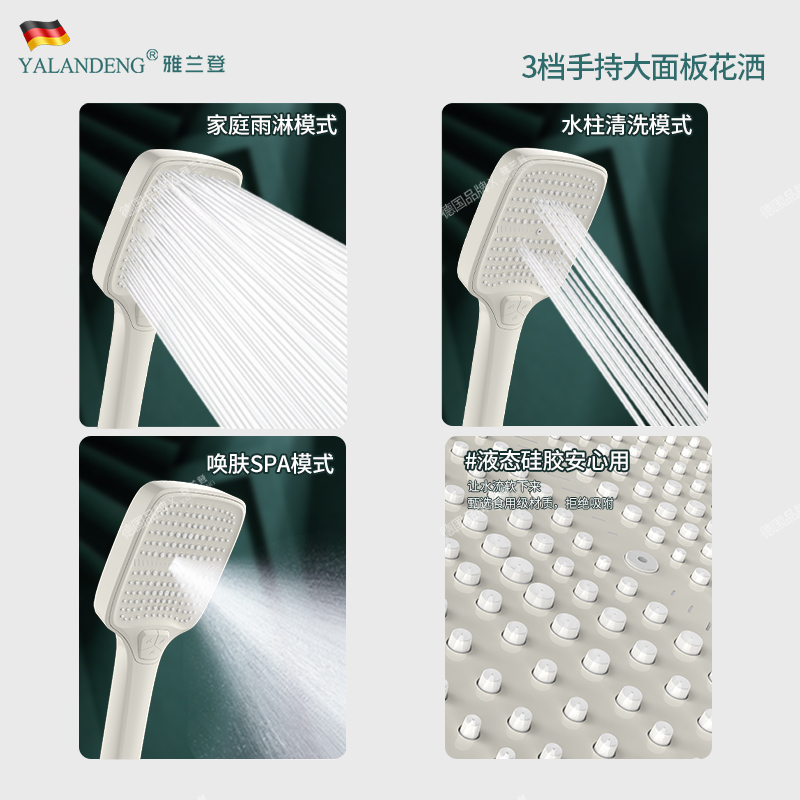 奶油风白色方形增压花洒喷头超强淋雨花晒洗澡水龙头淋浴头莲蓬头