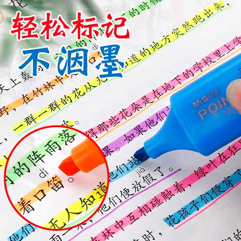 晨光荧光笔记笔记专用笔彩色彩笔做读书划重点中性笔颜色标记大头笔神器马克记号笔多色学生用学习扁头大容量