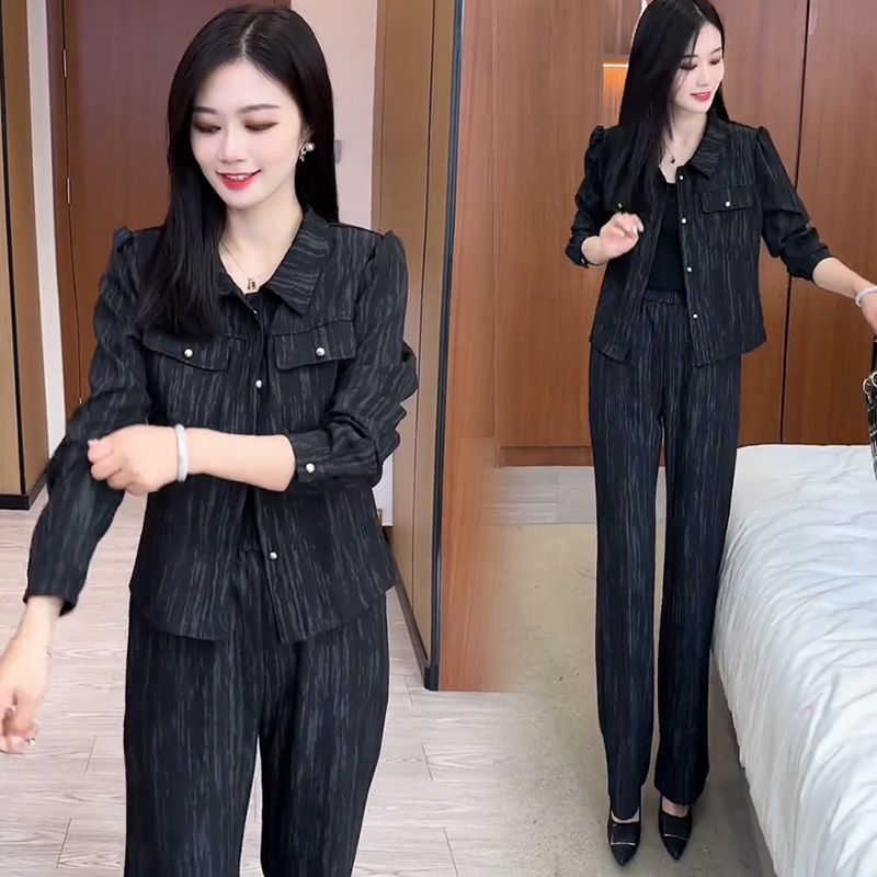 小香风时尚工装套装女2025春秋款洋气减龄短外套阔腿裤气质两件套