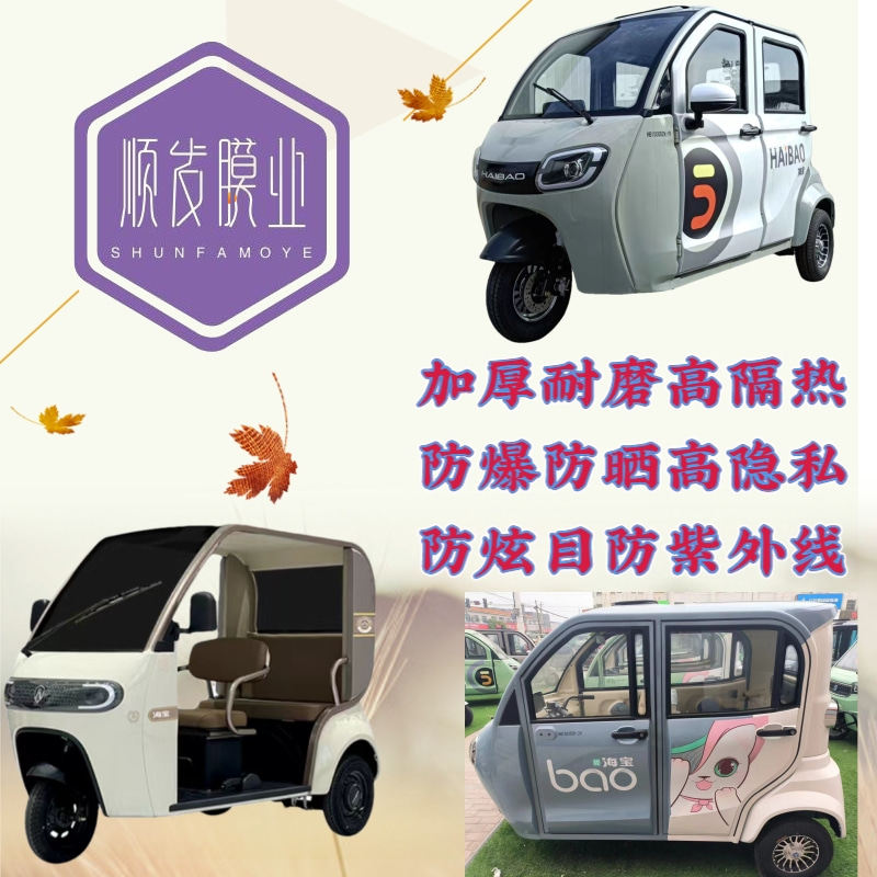 海宝电动三轮车四轮车免裁剪玻璃膜贴膜太阳膜防爆膜隔热膜防晒膜