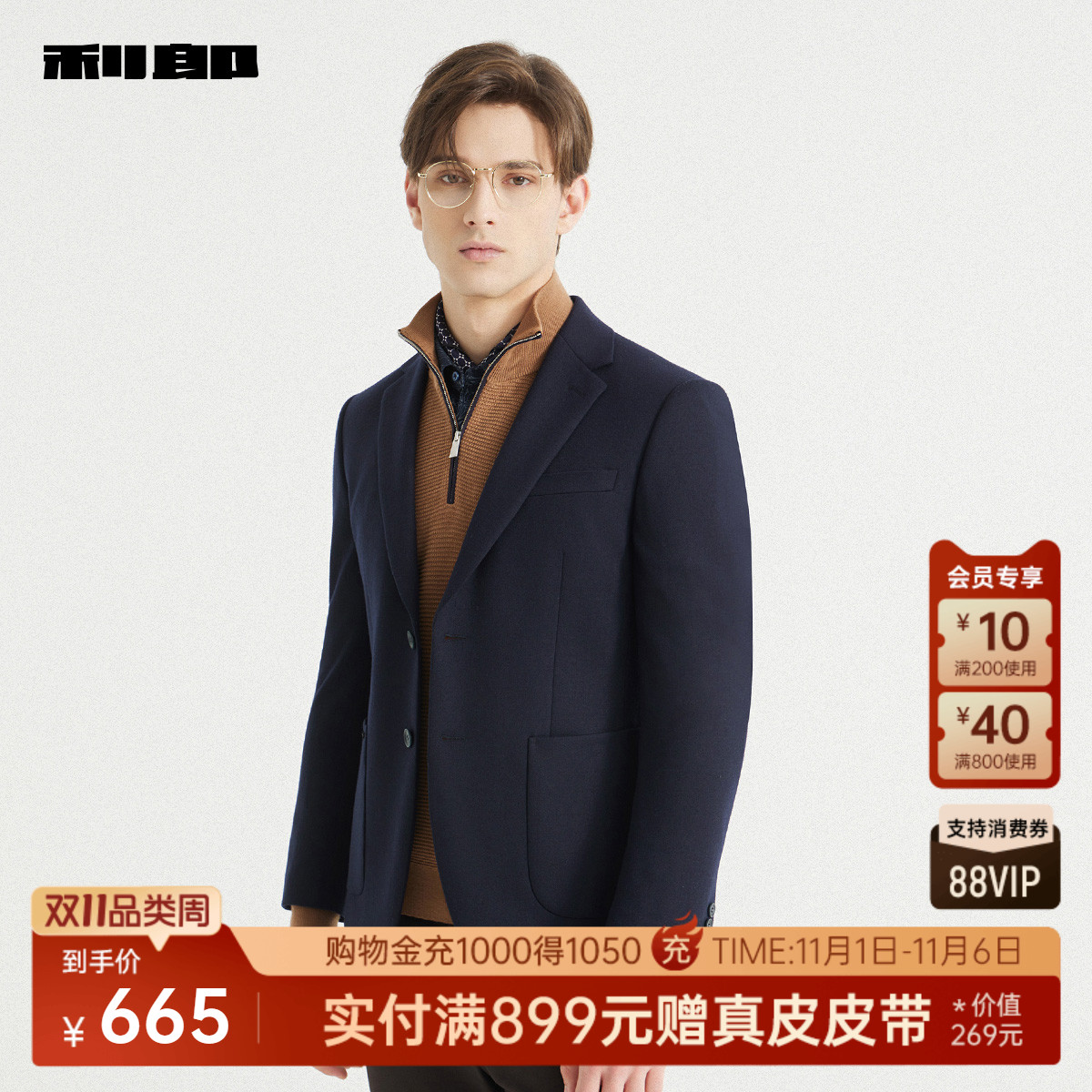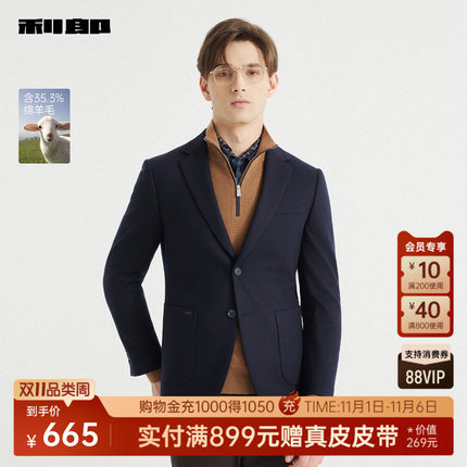 利郎官方含绵羊毛商务西服外套