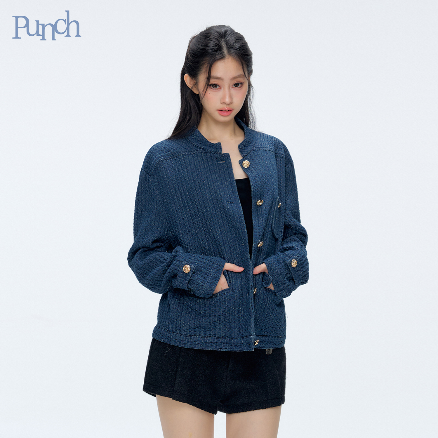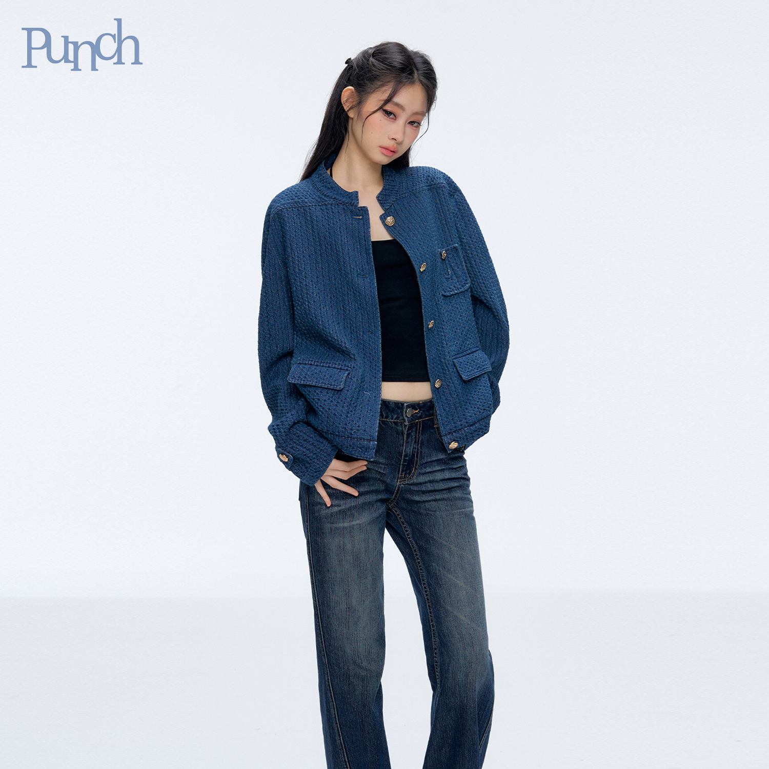PUNCH 25AW 秋装新款肌理感牛仔小香开衫立领外套夹克女