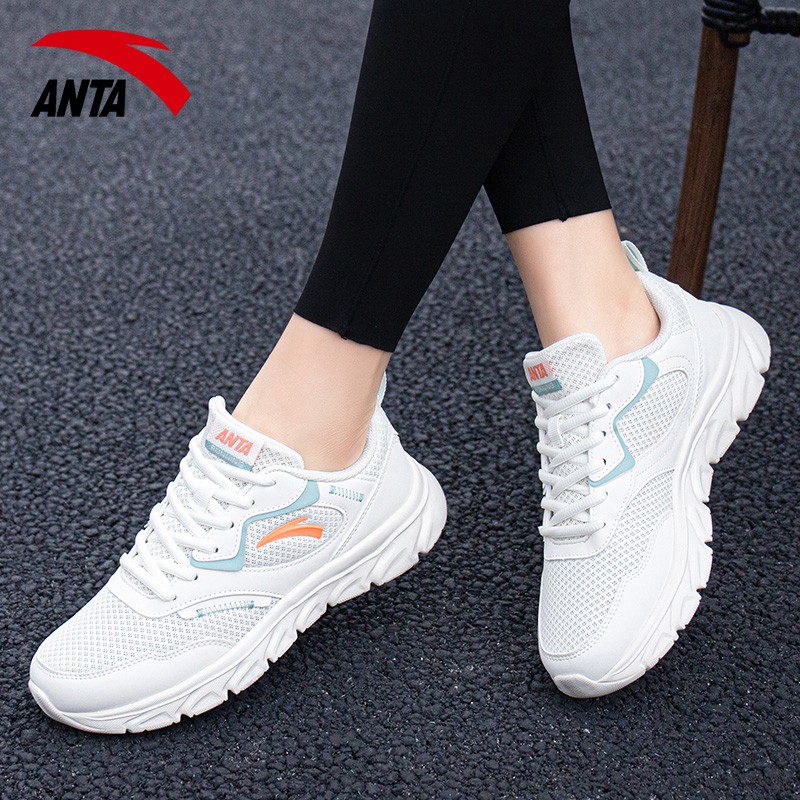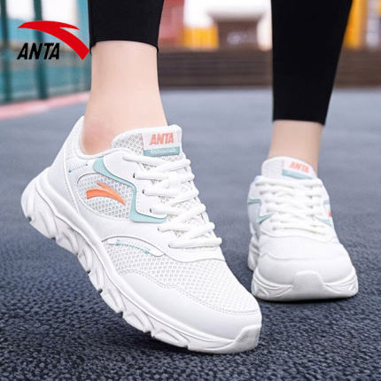 安踏正品女鞋秋季网面透气软底跑步鞋休闲小白鞋轻便减震运动鞋子