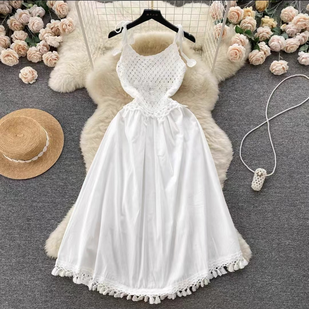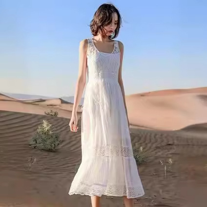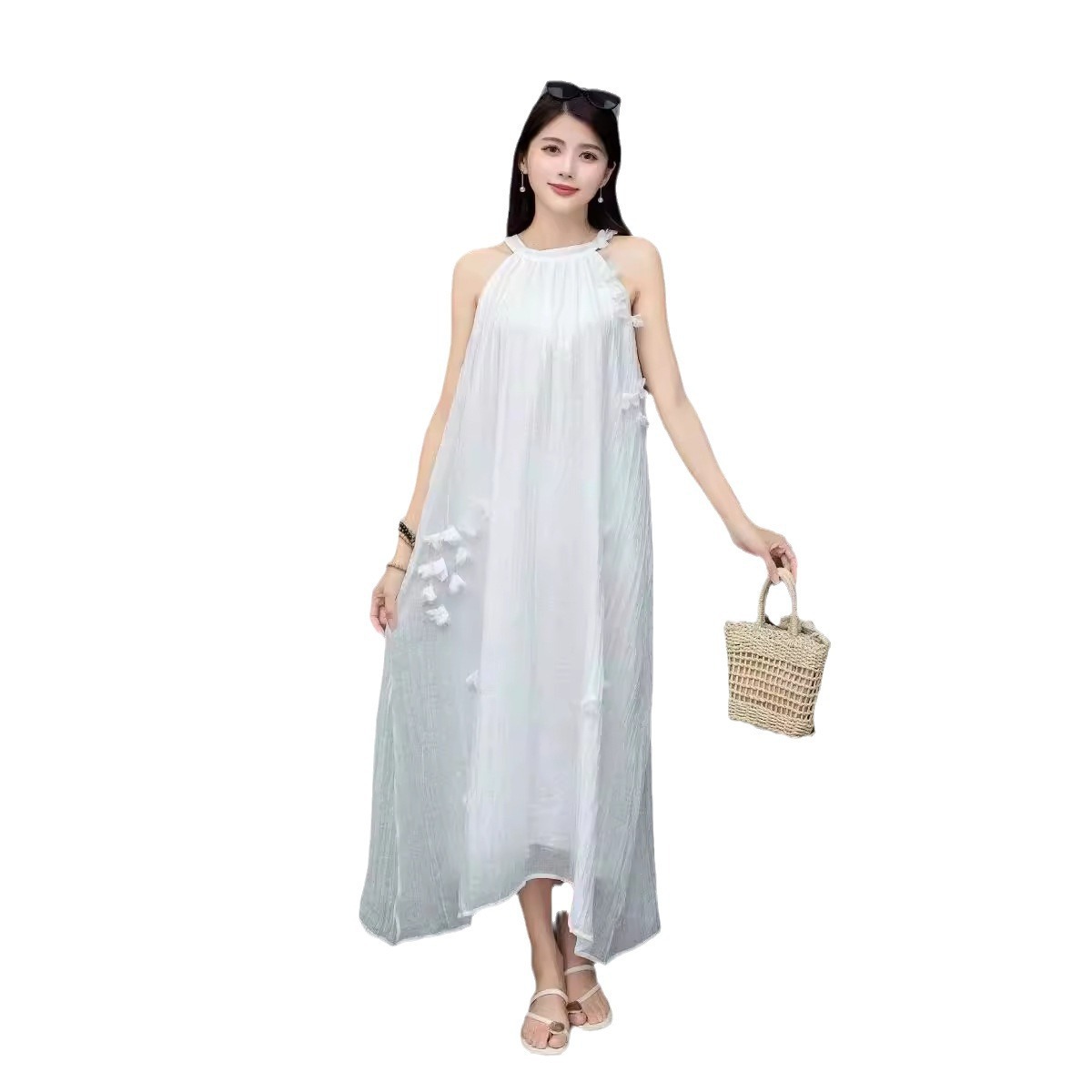 扎染专用白裙子白胚连衣裙民族风吊带连衣裙女装中长吊带连衣裙