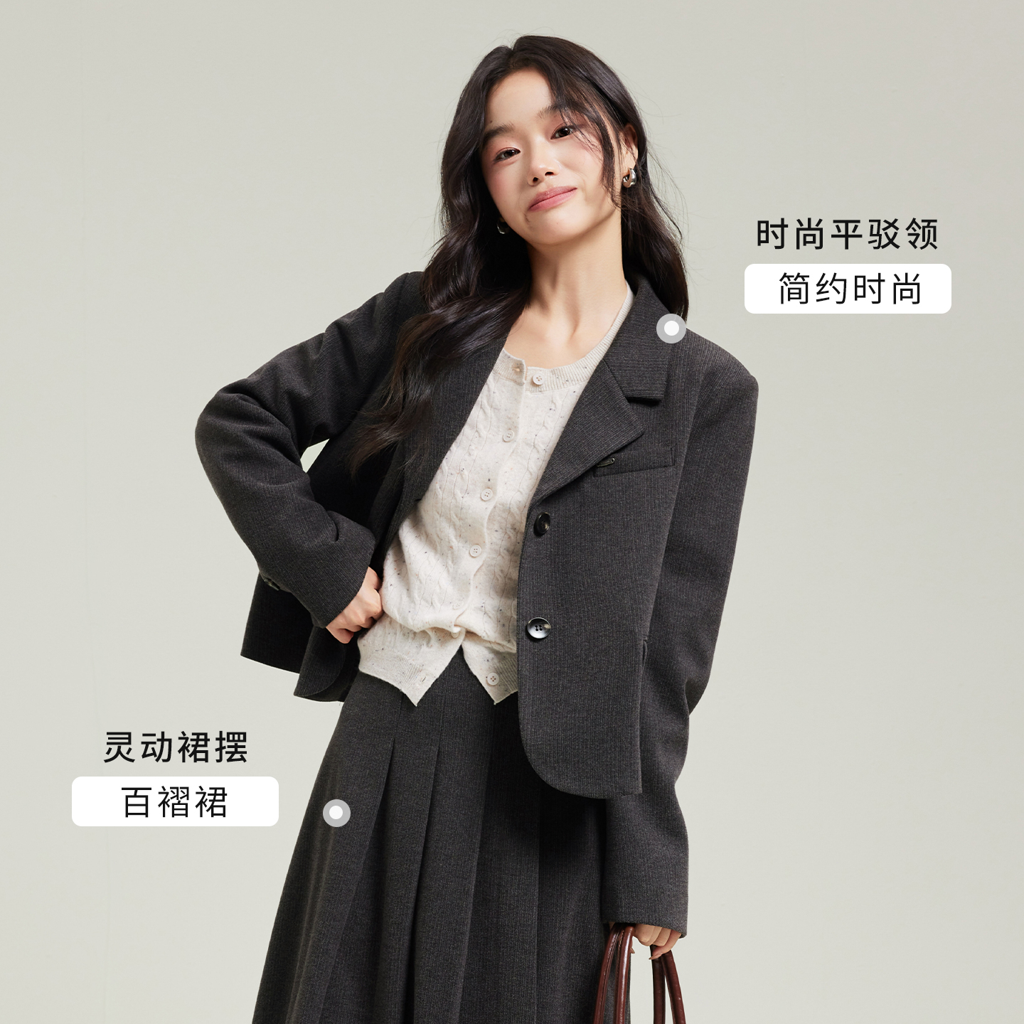 图曼朵灰色毛呢西装外套女秋冬高级感通勤短外套面试套装裙小个子