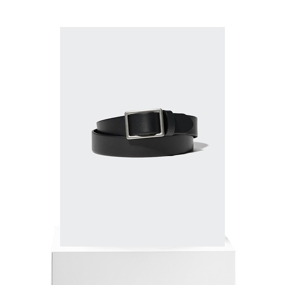 日潮跑腿UNIQLO优衣库 皮革无孔腰带 09 BLACK MEN L 478300牛皮