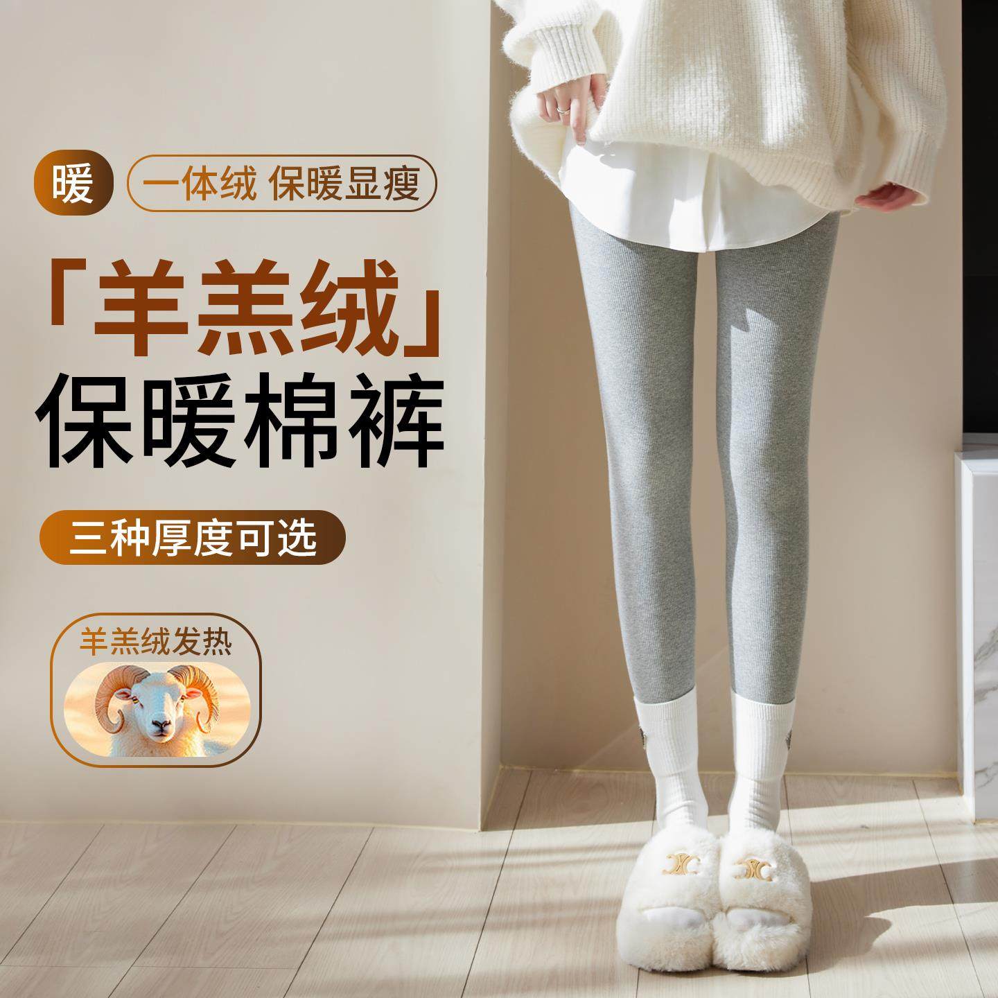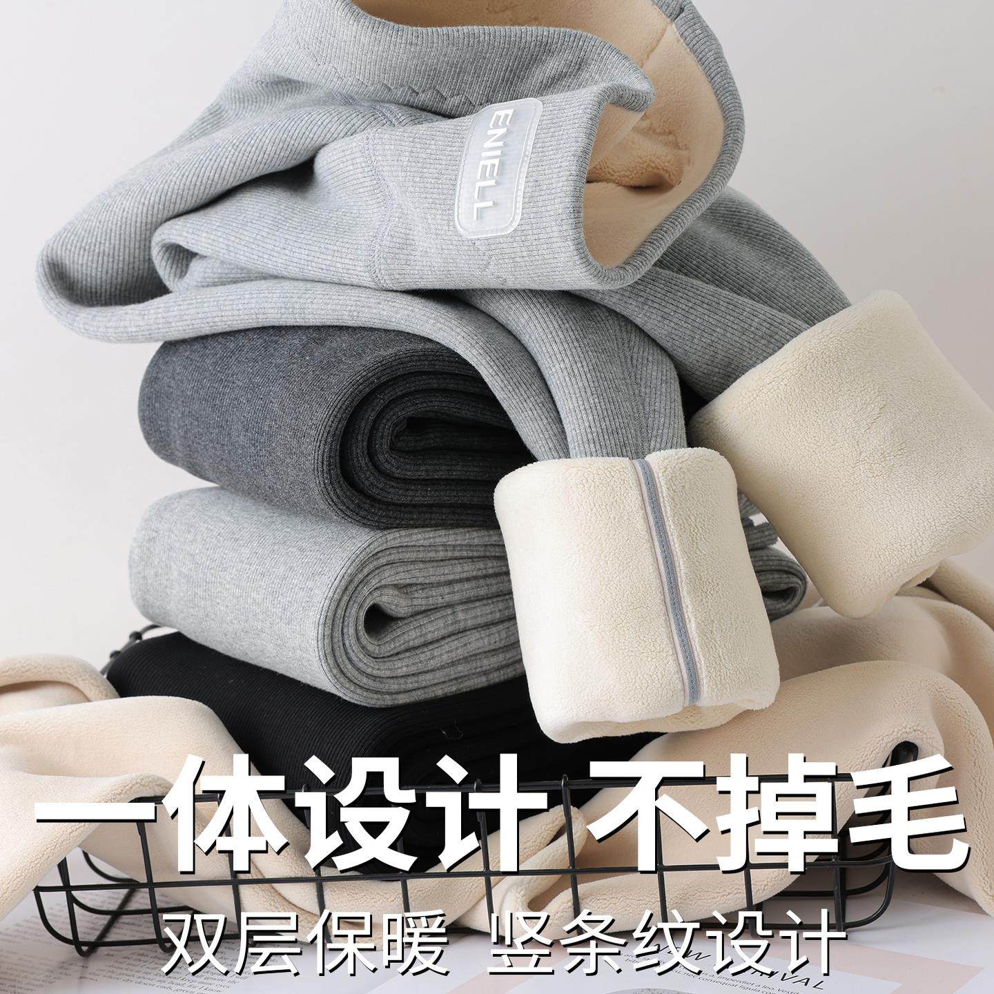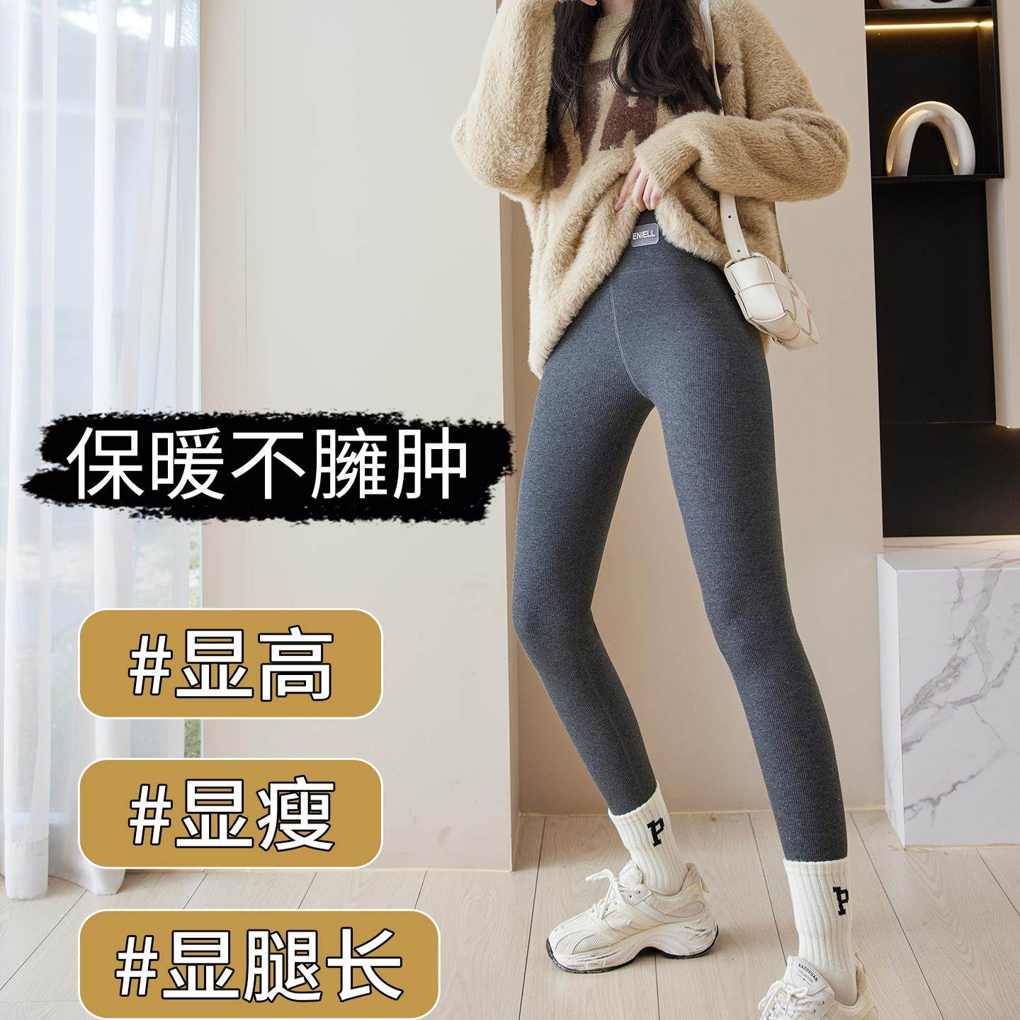 黑色羊羔绒打底裤女外穿秋冬季加绒加厚保暖裤压力竖条纹义乌棉裤