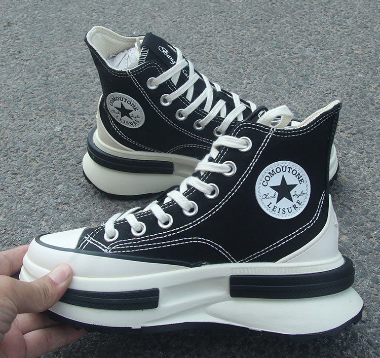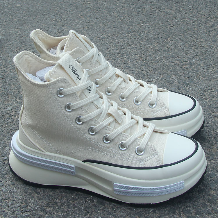 2023新款港风时尚帆布鞋秋季高松糕厚底增高软底休闲鞋超火爆网红