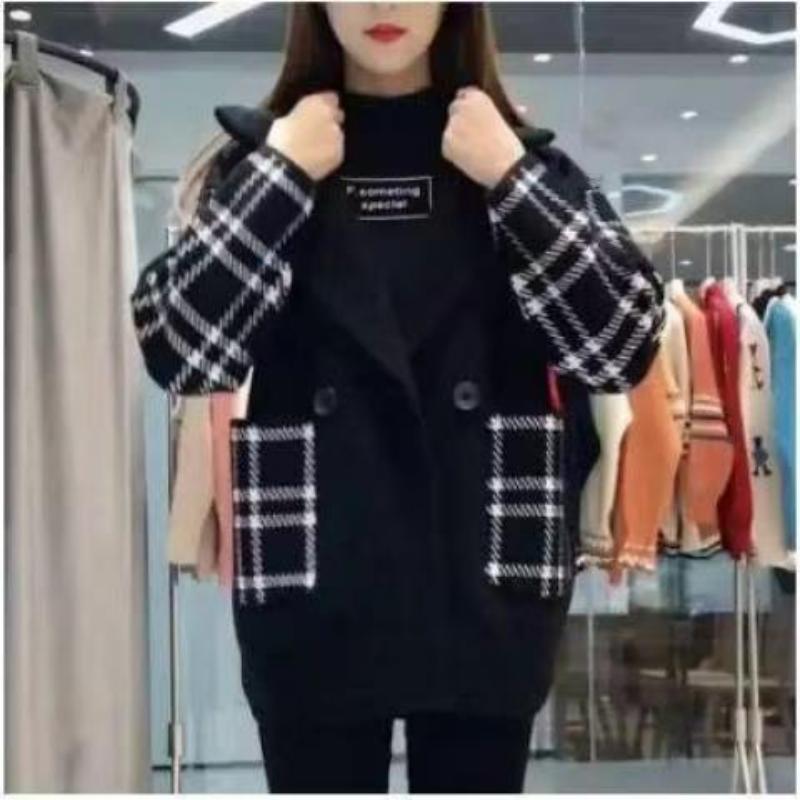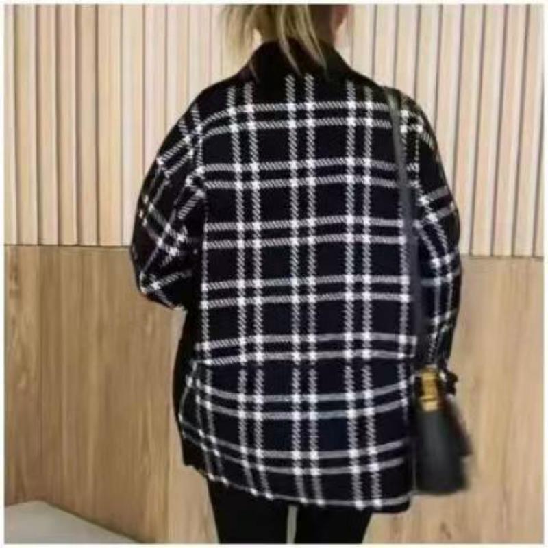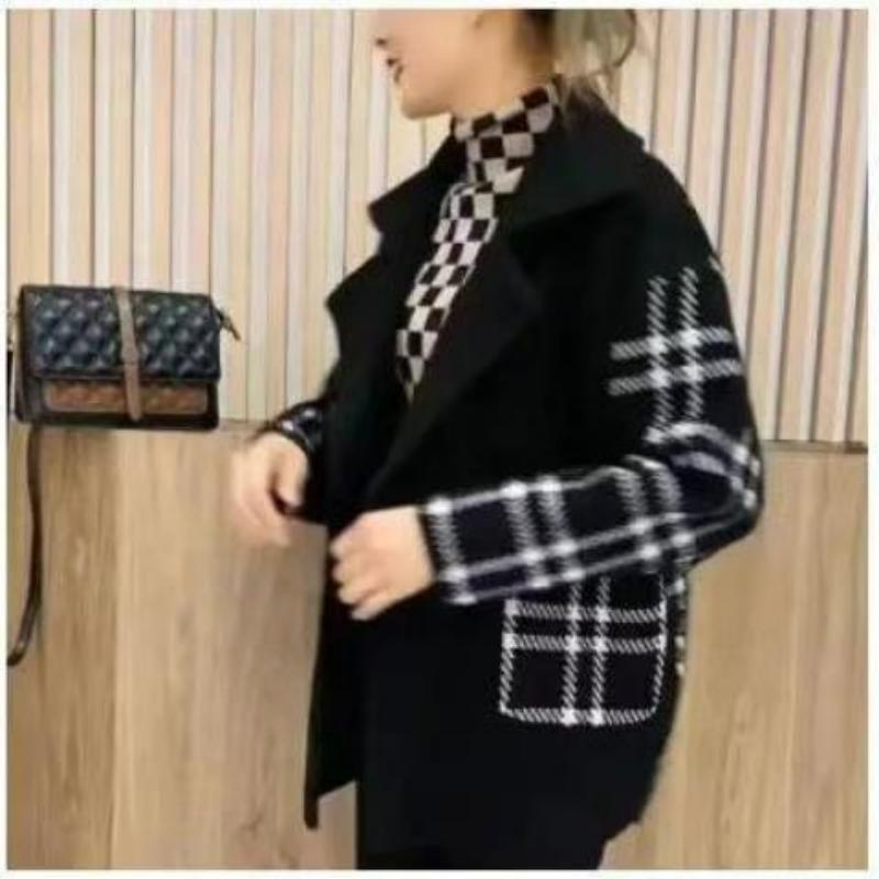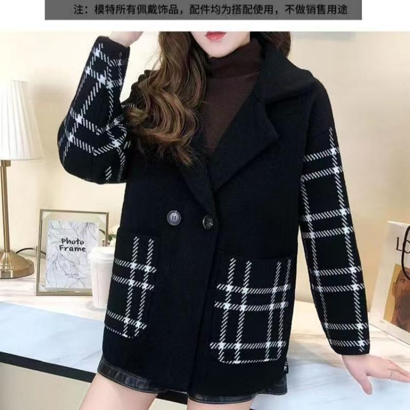 格子毛呢西装领外套女冬短款小个子2025春秋新款呢子大衣洋气