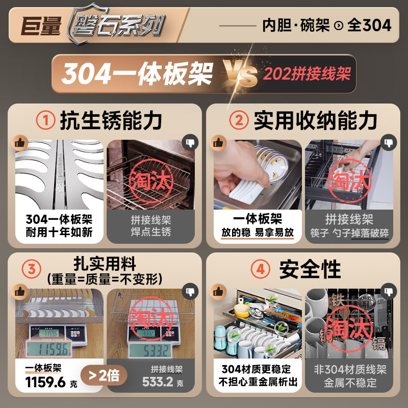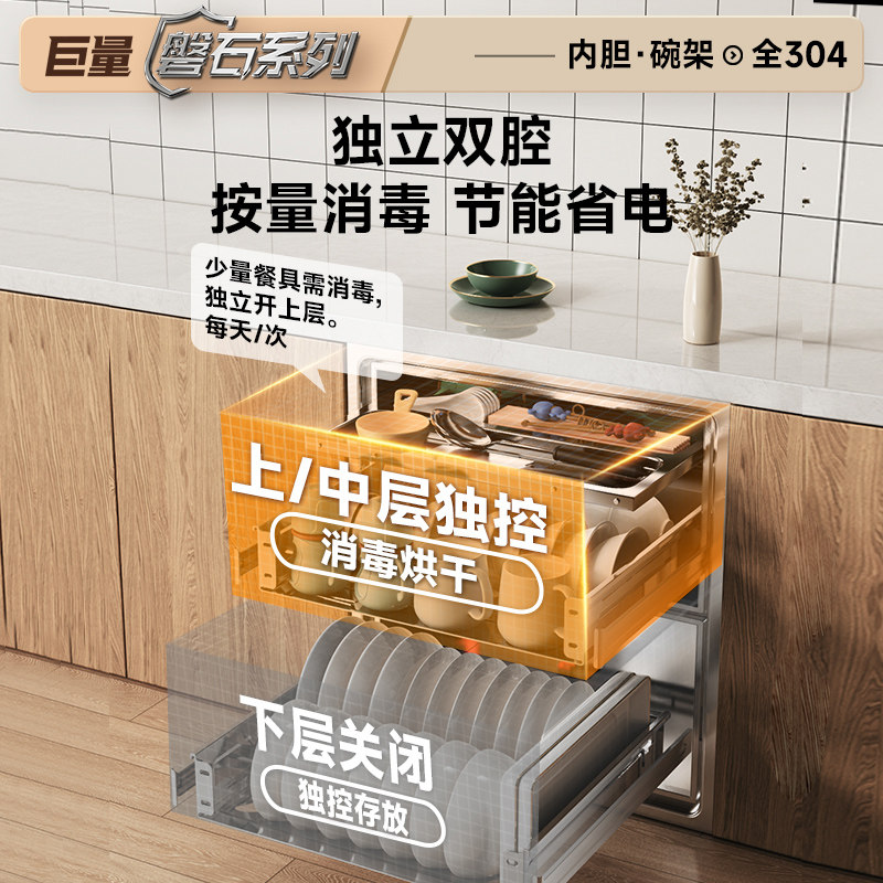 康宝磐石消毒柜家用嵌入式不锈钢大容量碗柜碗筷餐具收纳烘干一体