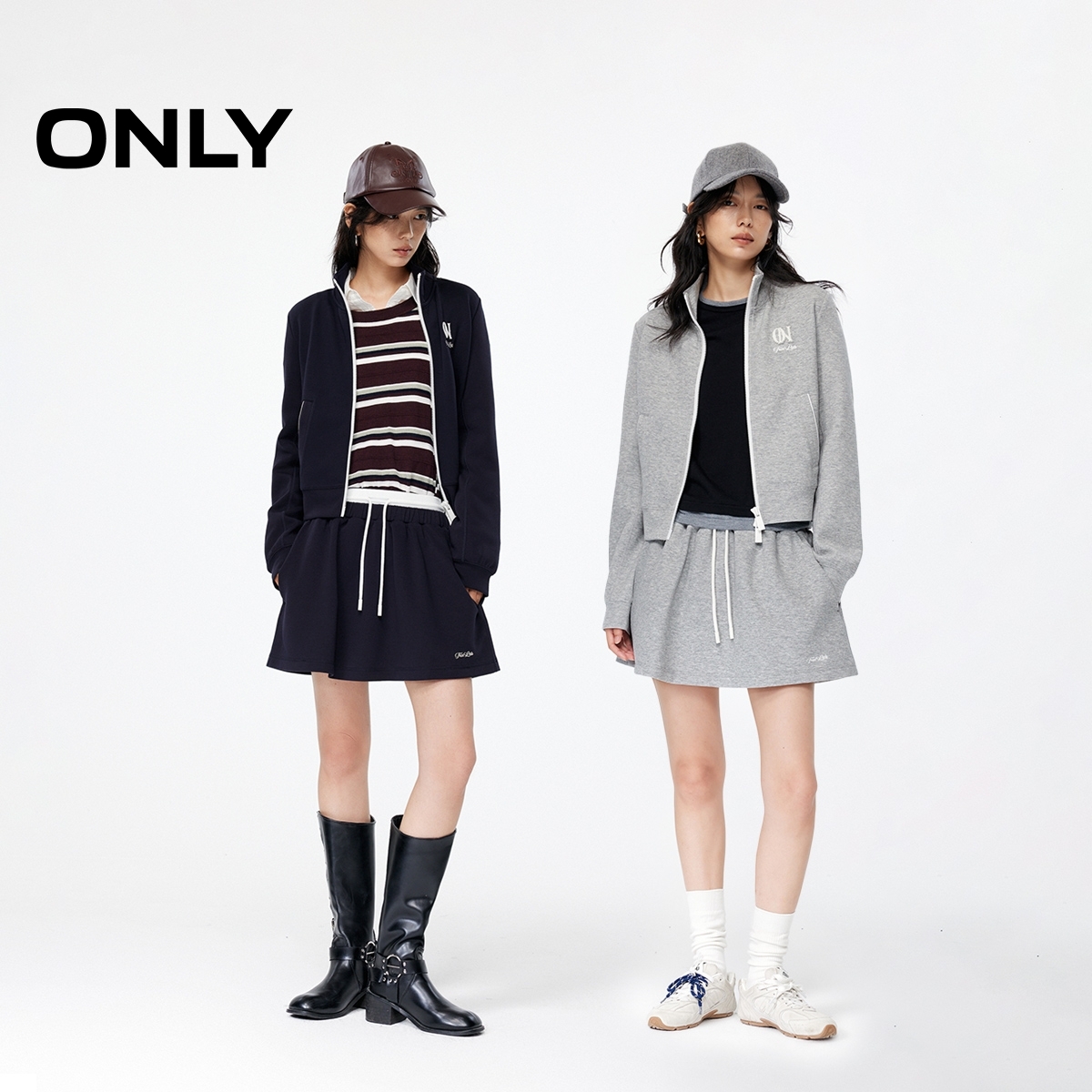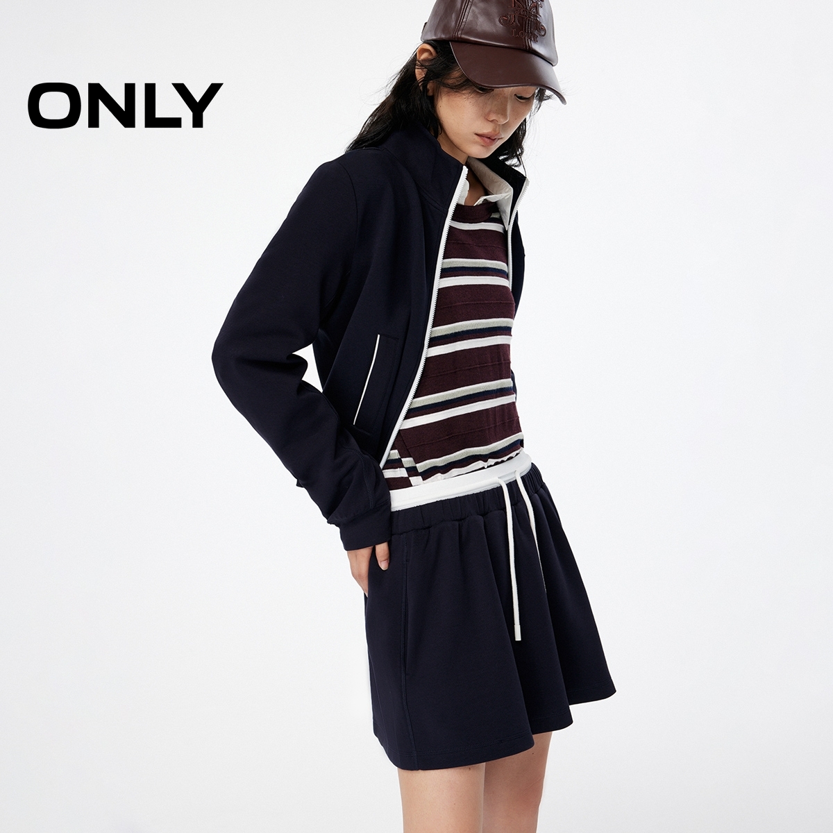 ONLY2025秋季新款运动风撞色双层腰头防走光短裤设计短裙半身裙女