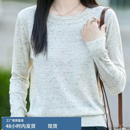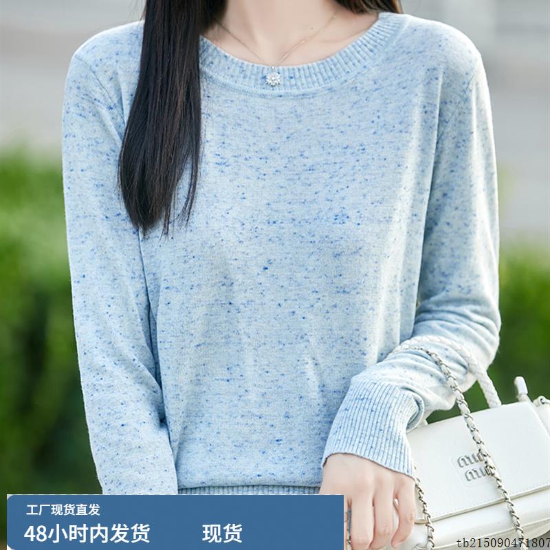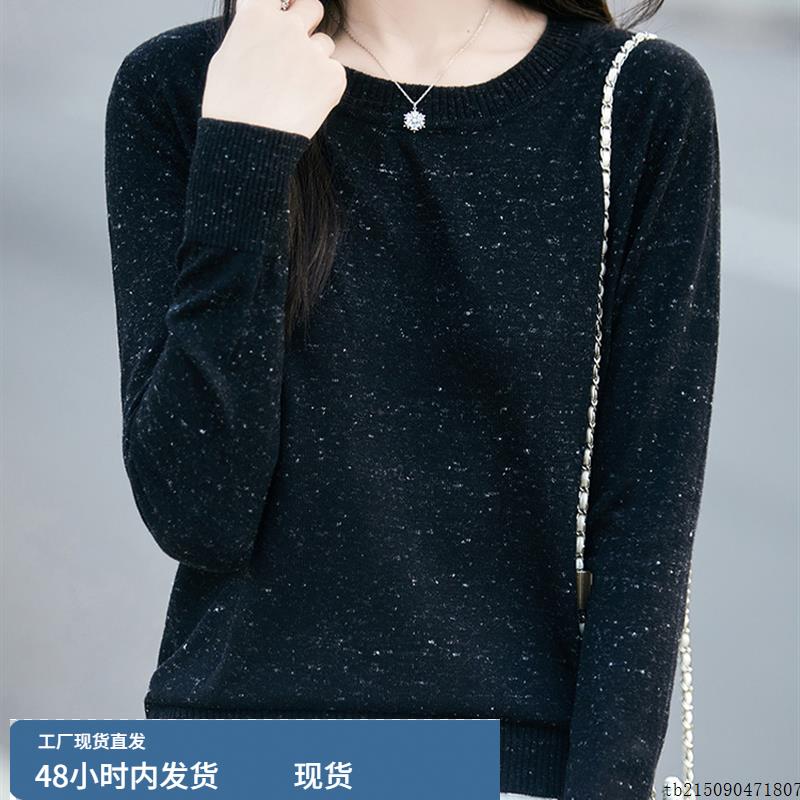 法式高端点子纱精纺毛针织衫女2025新圆领套头毛衣宽松显瘦打底衫
