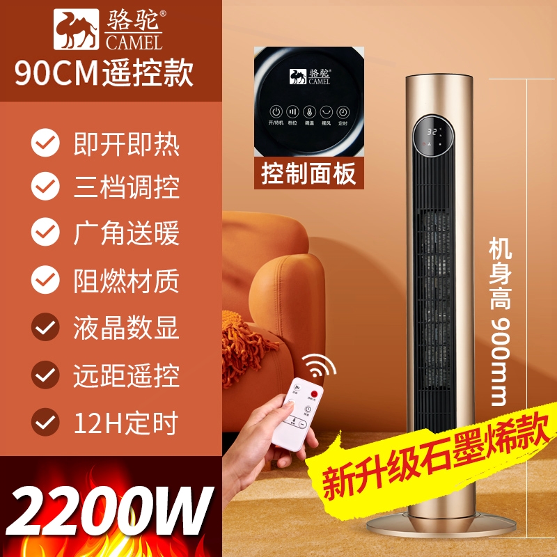 骆驼暖风机石墨烯取暖器立式家用速热风电暖器节能省电暖气炉小型