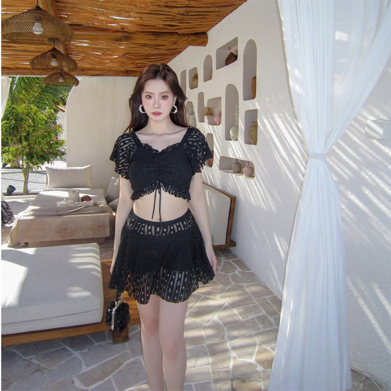 泳衣女士分体两件套镂空新款保守显瘦遮肉泡温泉海边度假游泳套装