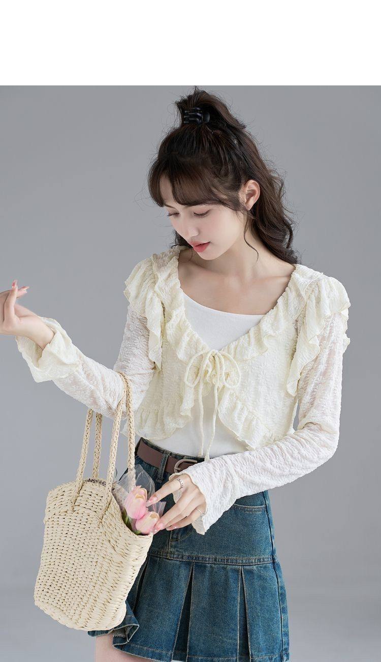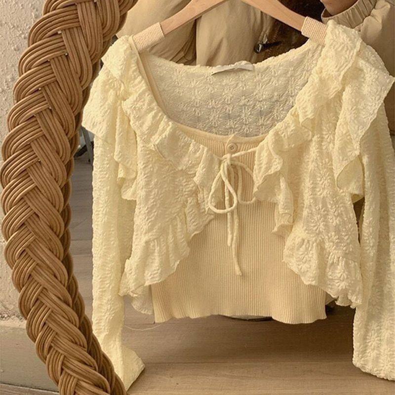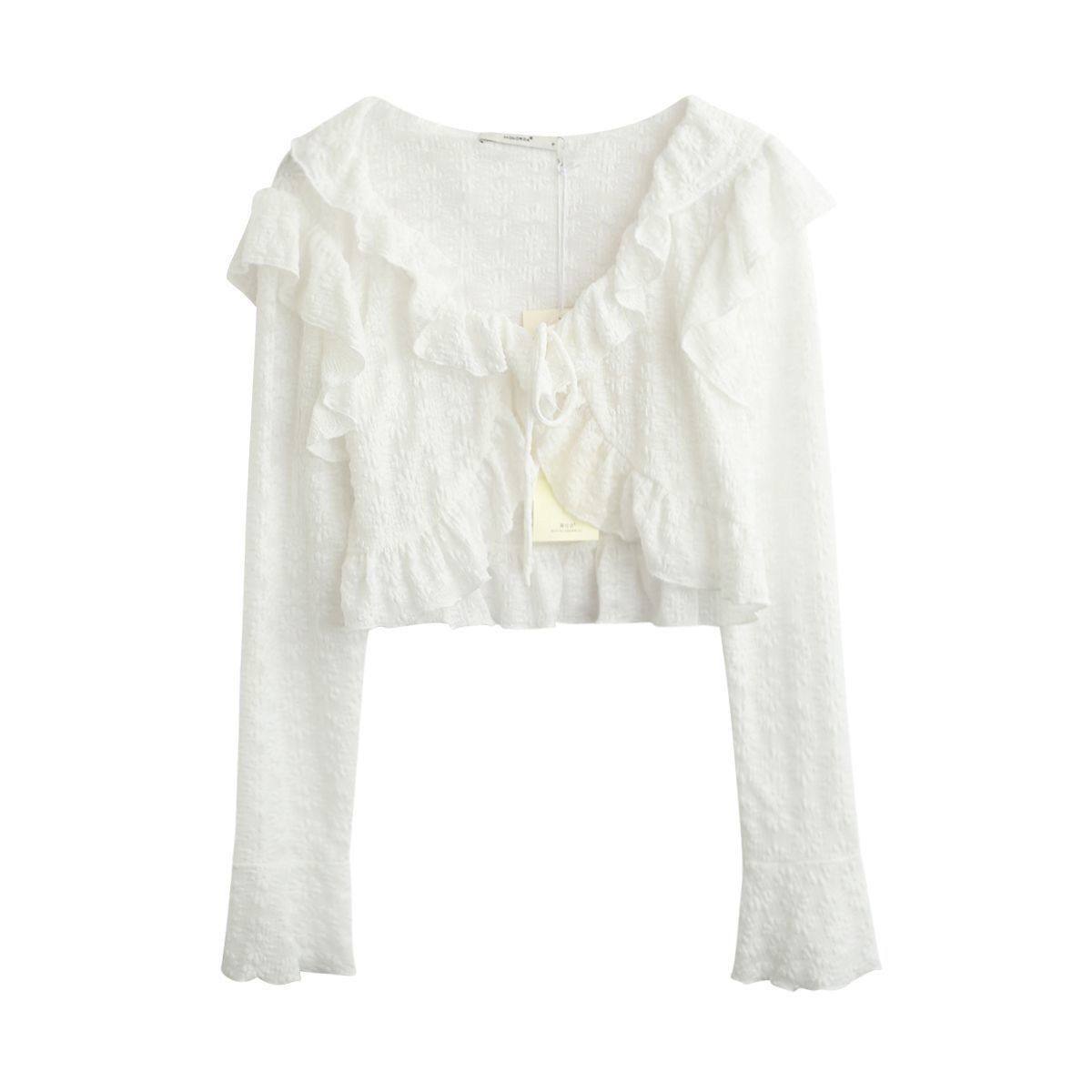 公主昕薇甜美荷叶边短款长袖上衣复古宫廷风披肩小众设计感衬衫女