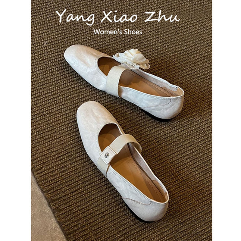 羊皮~法式气质花朵玛丽珍单鞋女夏复古百搭一字带浅口平底芭蕾鞋