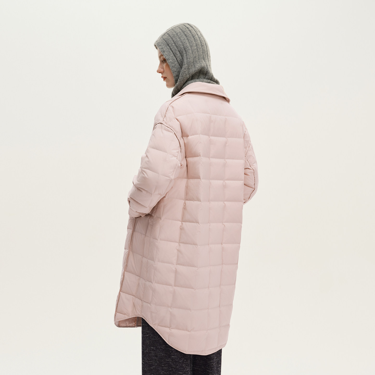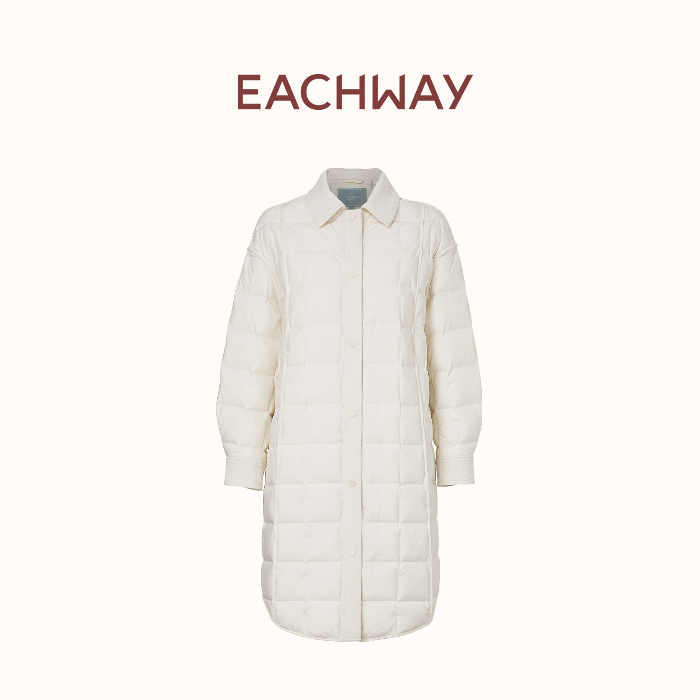 艺之卉翻领经典方块绗缝羽绒服通勤轻薄中长款外套2025秋新款