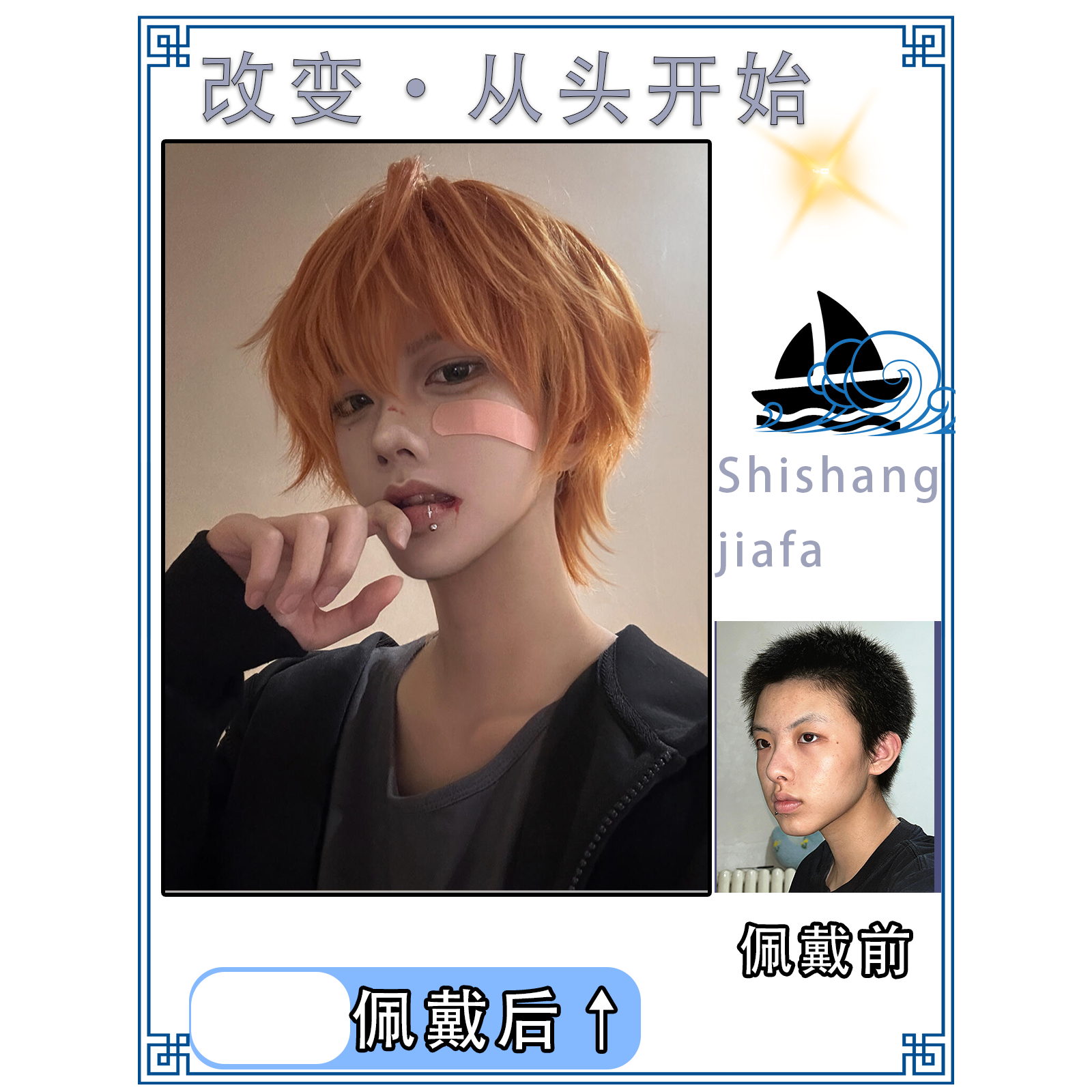 元气金橘色假发男狼尾脏橘色亮系短直发鲻鱼头亚比风个性百搭头套