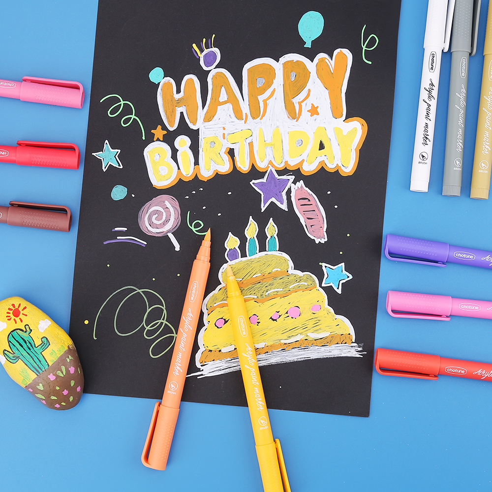 秋图丙烯马克笔软头粉彩笔防水手绘diy画鞋玻璃涂鸦笔咕卡绘画笔