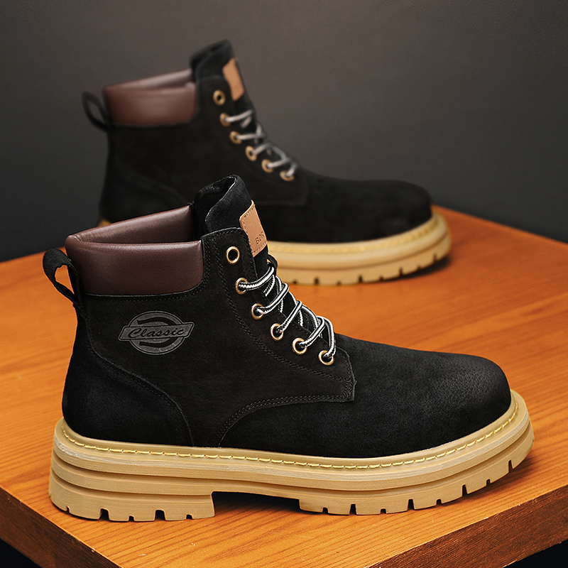 踢不烂大黄靴男鞋秋冬季厚底高帮马丁靴男士复古休闲增高工装皮靴