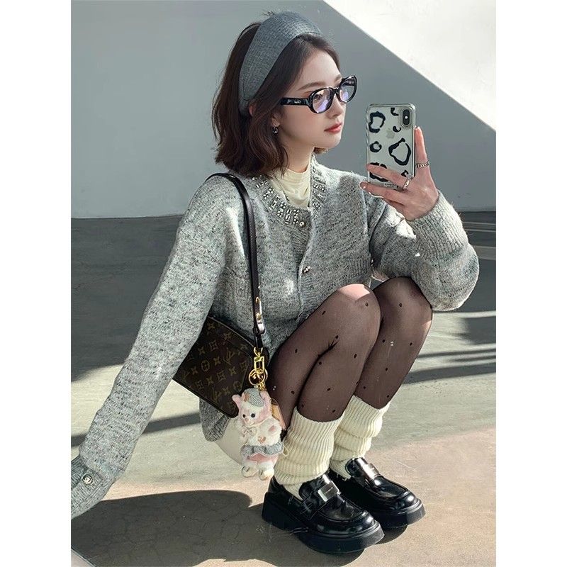 小众设计灰色毛衣开衫女2025秋季新款独特超好看高级感针织短外套
