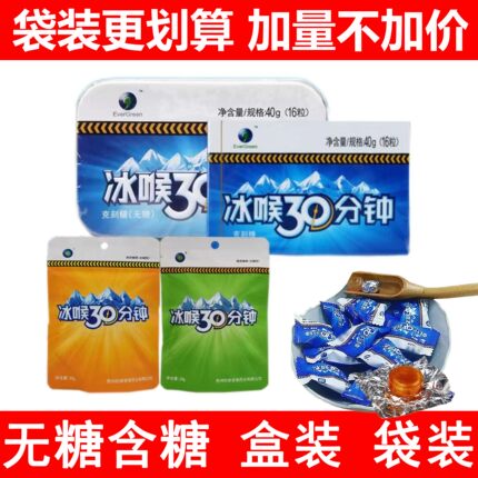 冰喉30分钟无糖铁盒喉糖清凉薄荷含片含糖教师护嗓袋装喉糖