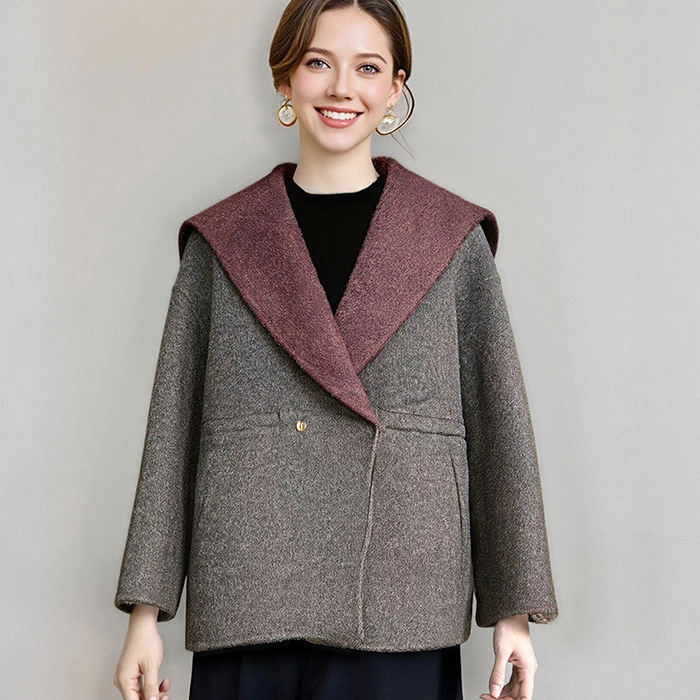 2025年秋冬新款时尚女士毛呢双面羊毛修身短款羊毛大衣女-EDS5062