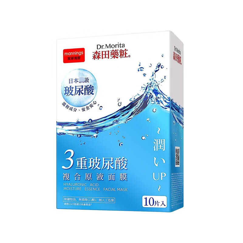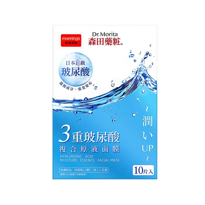 香港直邮森田药妆三重玻尿酸复合原液面膜贴10片补水保湿原装正品