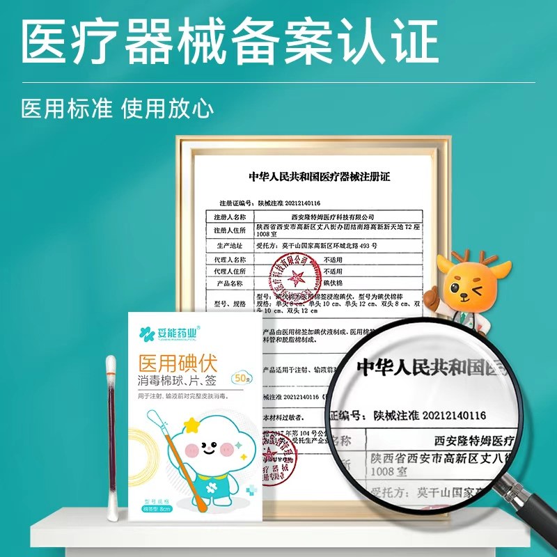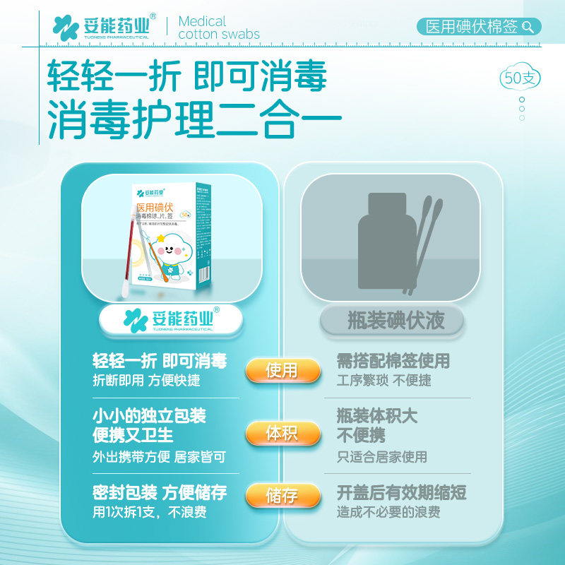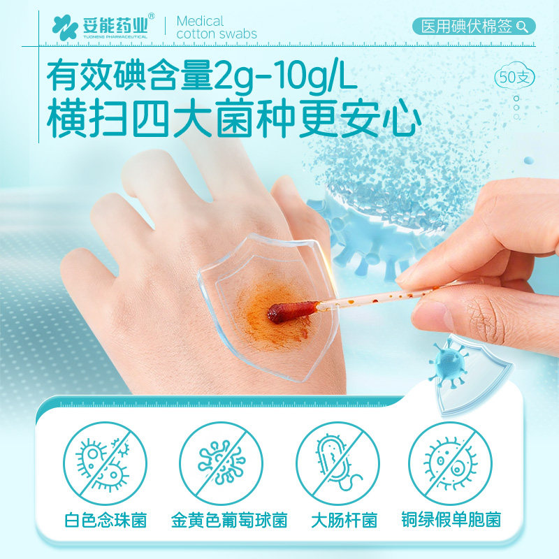 碘伏祛痘痘棉签新生婴儿一次性医用伤口肚脐带消毒液酒精脱脂棉棒
