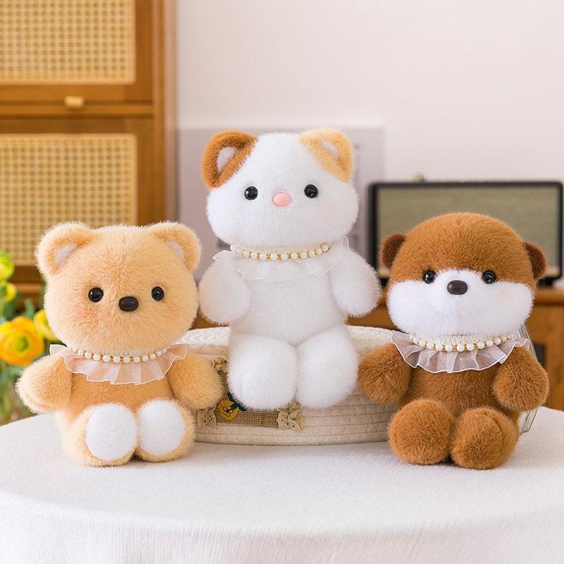跨境网红爆款正版珍珠跑跑毛绒玩具小熊象三花猫玩偶公仔抓机娃娃