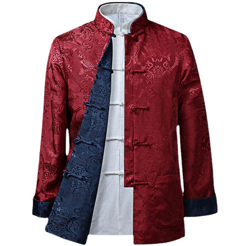 春秋唐装外套男士休闲夹克爸爸装中国风中老年长袖双面穿盘扣复古