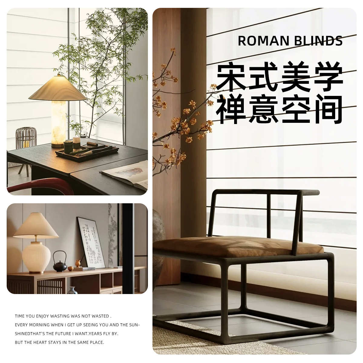 罗马帘纱帘透光不透人阳台遮光中式茶室窗帘宋式美学亚麻遮阳卷帘
