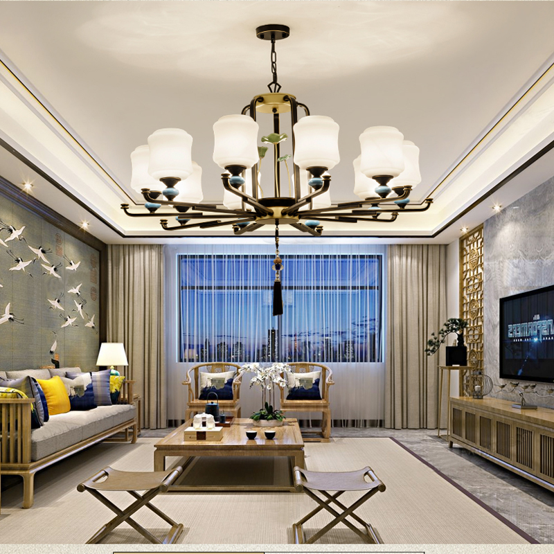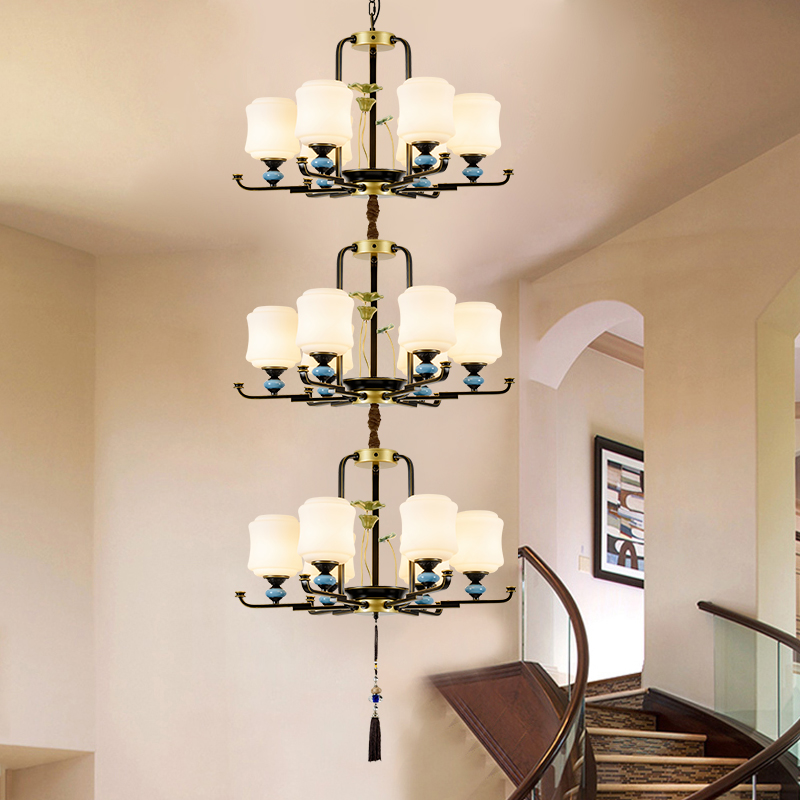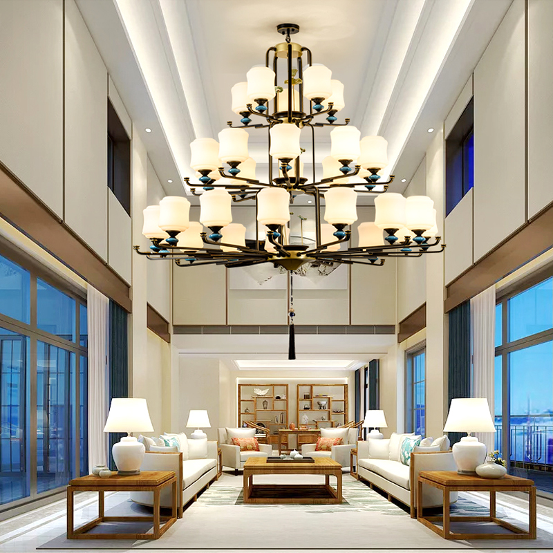 新中式吊灯客厅灯具中国风卧室餐厅灯创意O复古别墅复式楼大吊灯