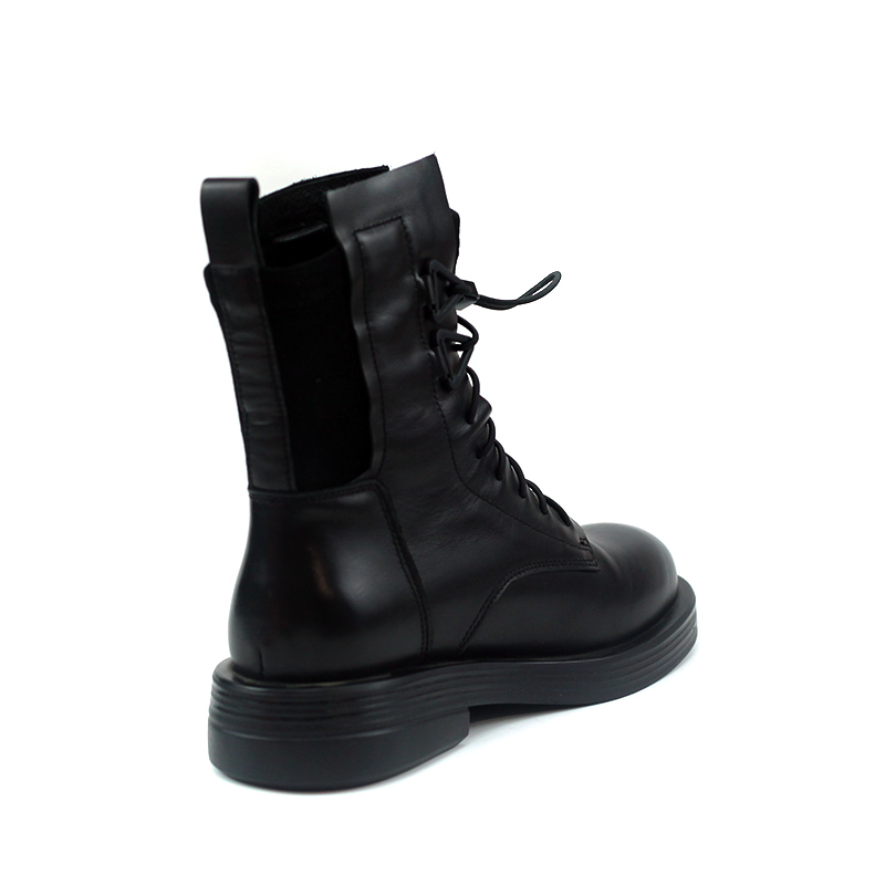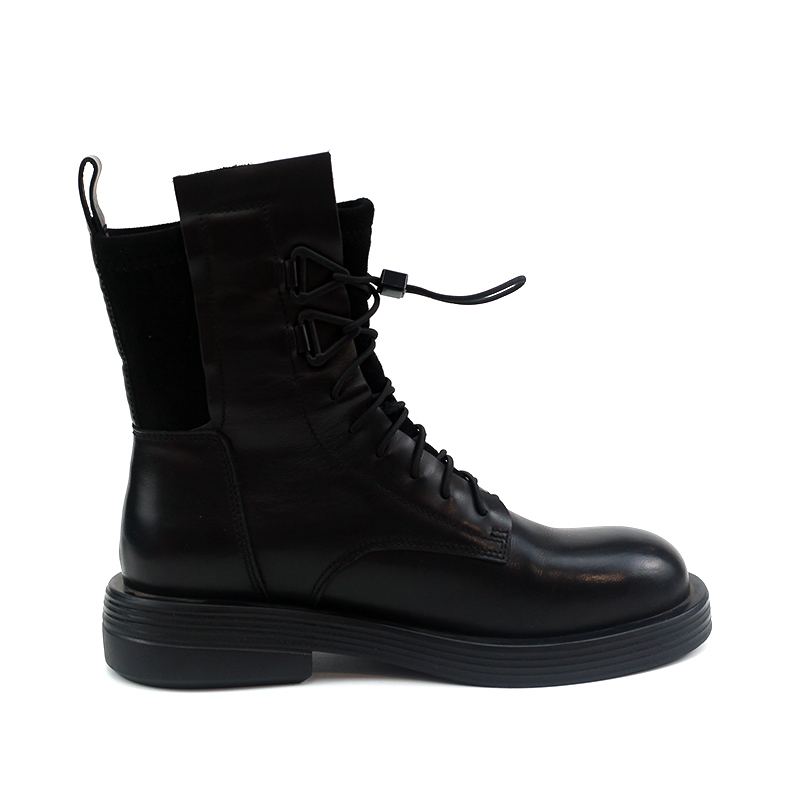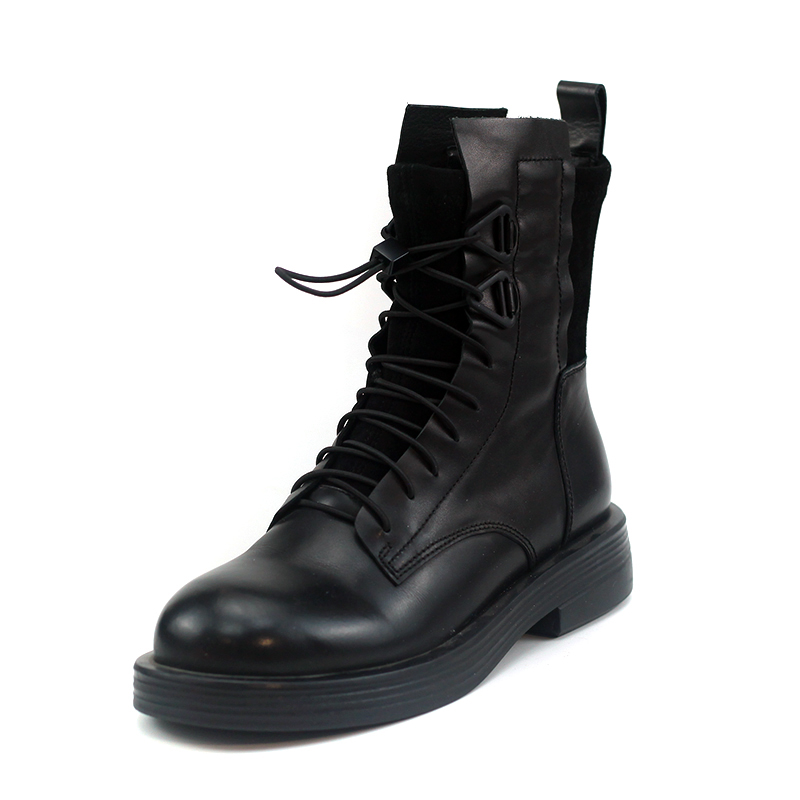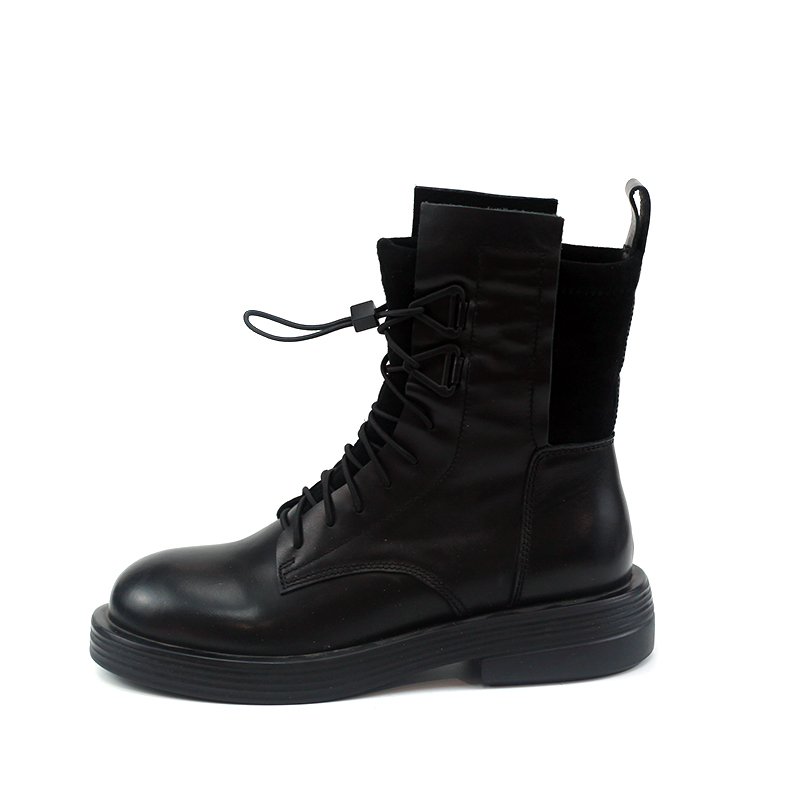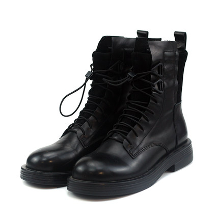 卓诗尼女鞋女士短筒靴子圆头平跟系带侧拉链百搭休闲加绒马丁靴子