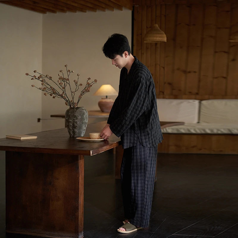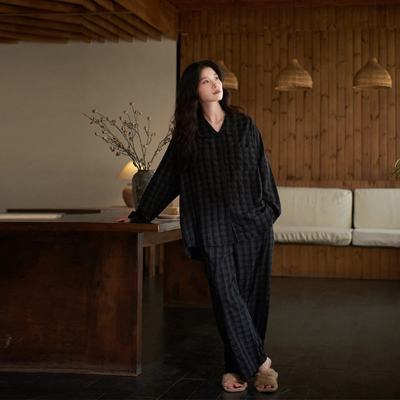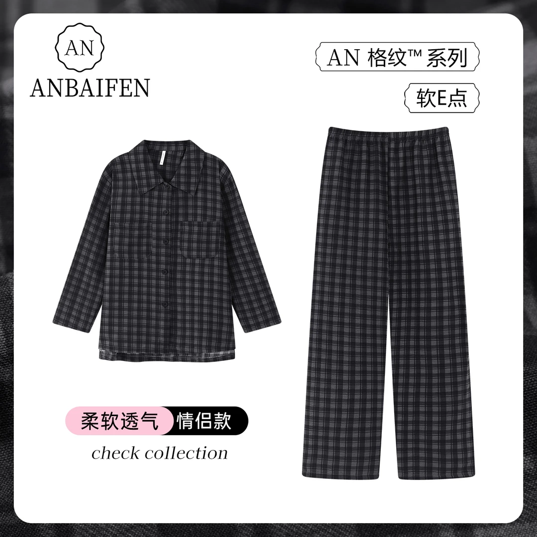 新款情侣睡衣长袖2025年春秋季女士家居服男士格子可外穿套装衬衫