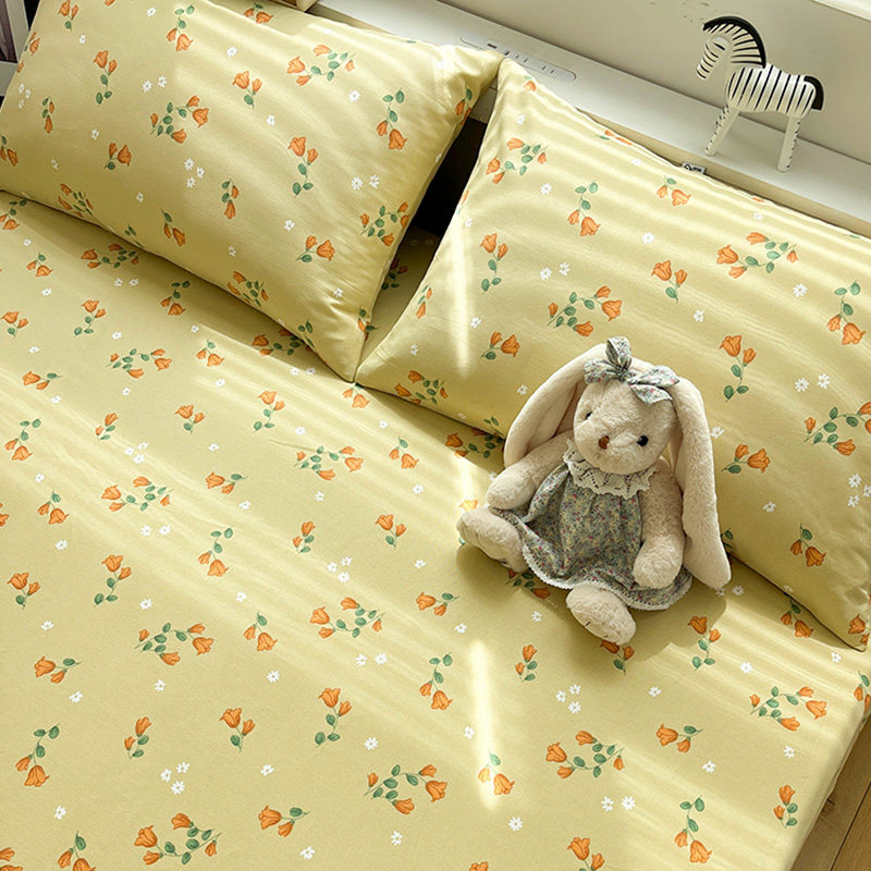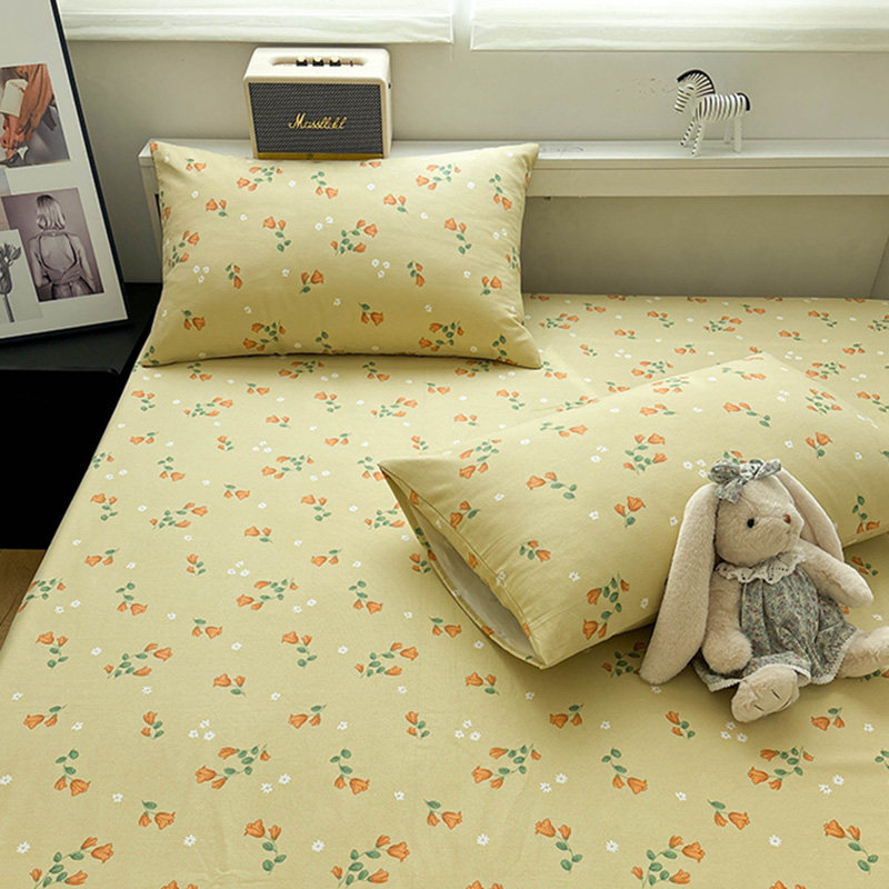 高档加厚老粗布花语纯棉床单单件100全棉床笠枕套三件套四季可用