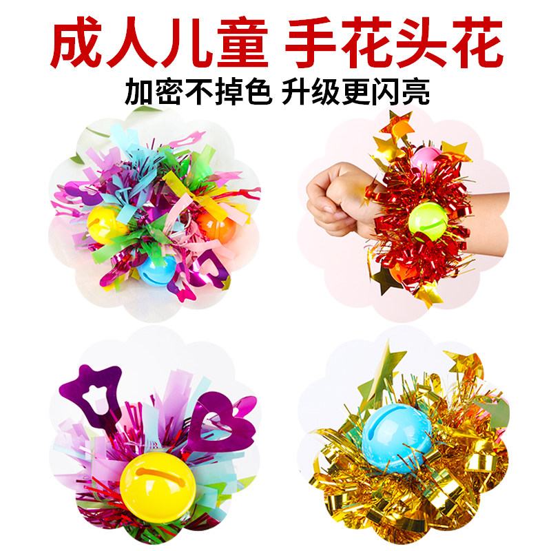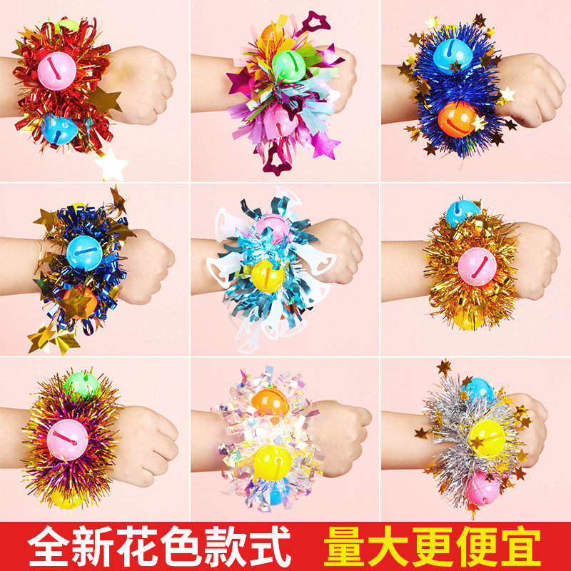 幼儿园跳舞手腕花儿童表演皮筋手花运动会啦啦队道具铃铛手环花