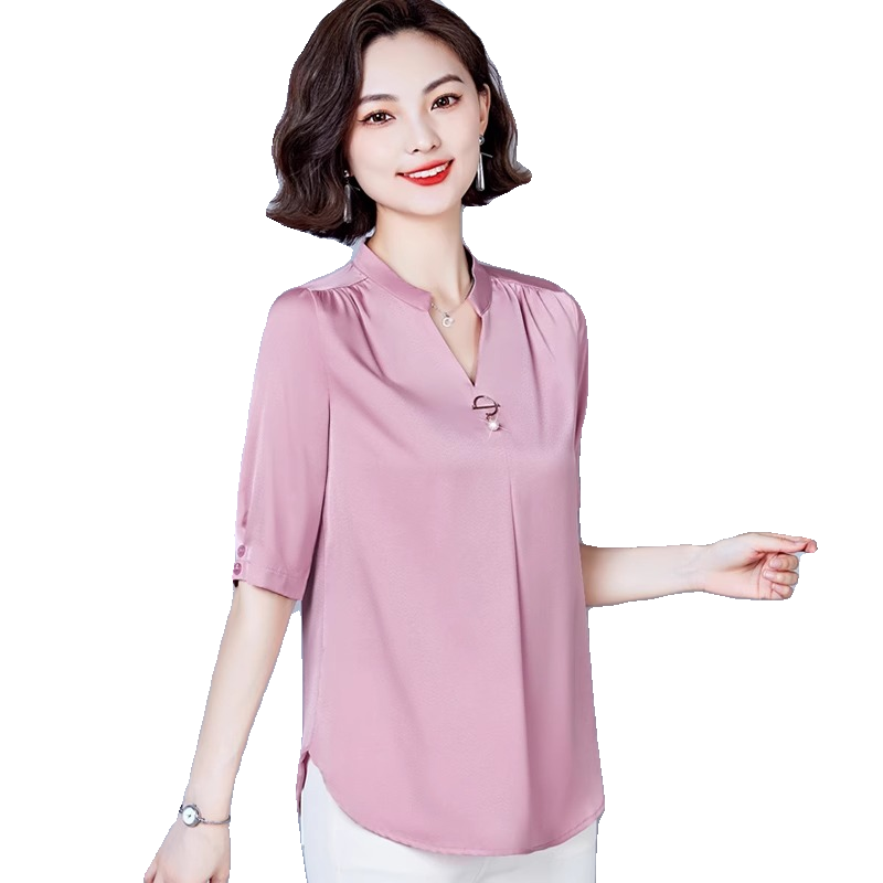大码宽松遮肚女装2025夏季新款短袖衬衫七分袖妈妈雪纺衫女士上衣