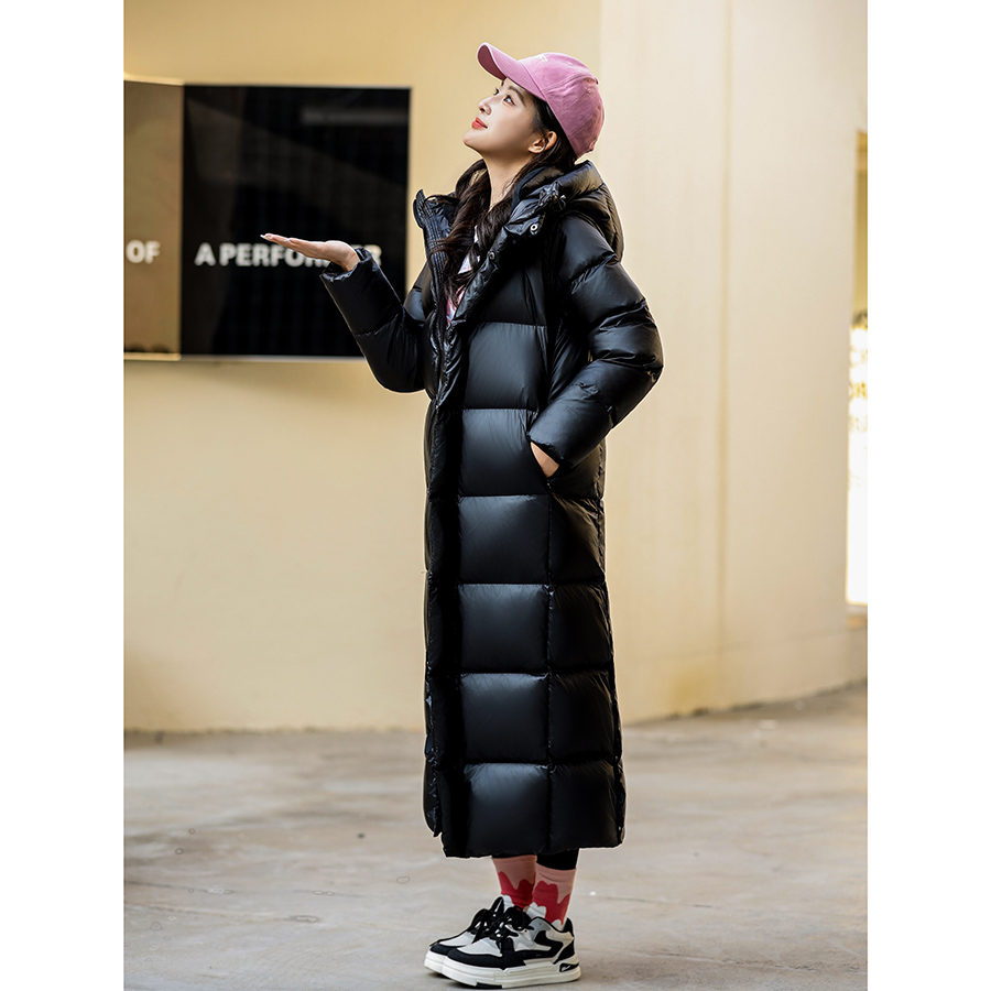 黑金款鹅绒连帽羽绒服女长款到脚踝情侣户外防寒冬季外套男女通用