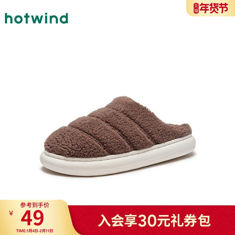 热风男鞋2024年冬季新款棉拖鞋男士时尚家居鞋毛绒保暖舒适包头拖