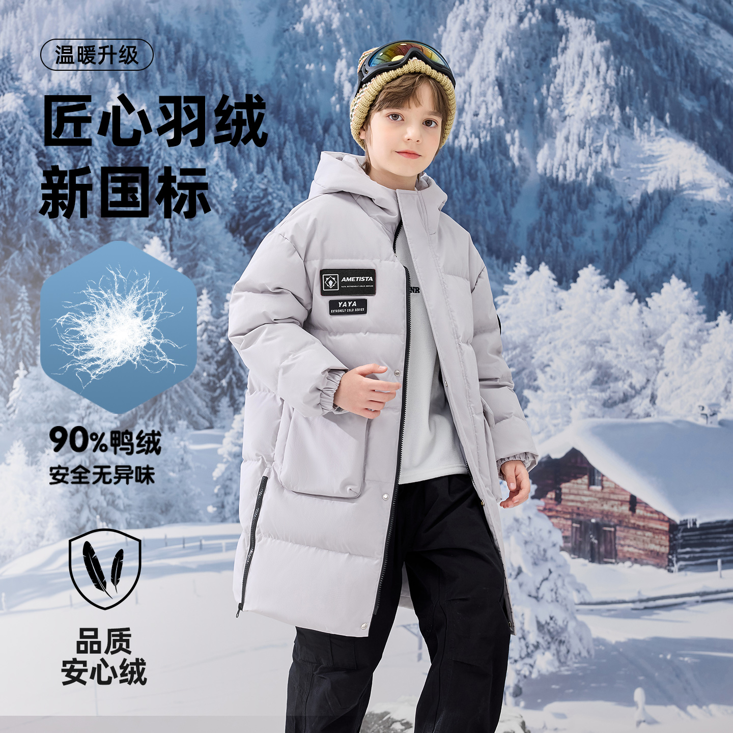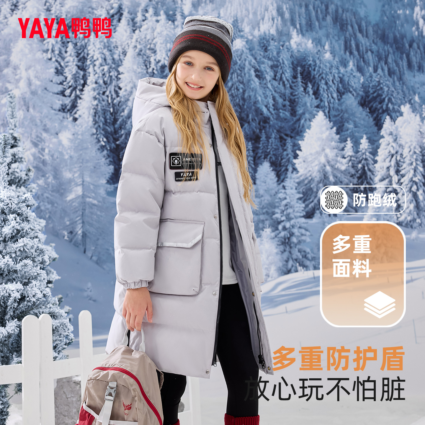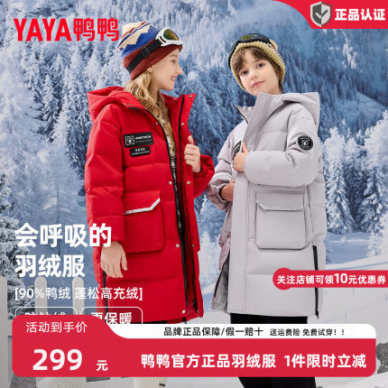 鸭鸭儿童羽绒服男女童2025冬季新款中长款加厚青少年学生防寒外套