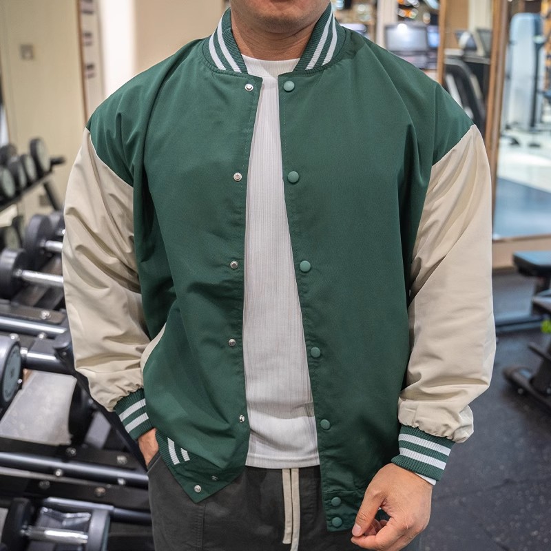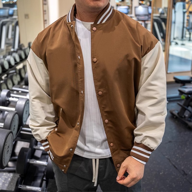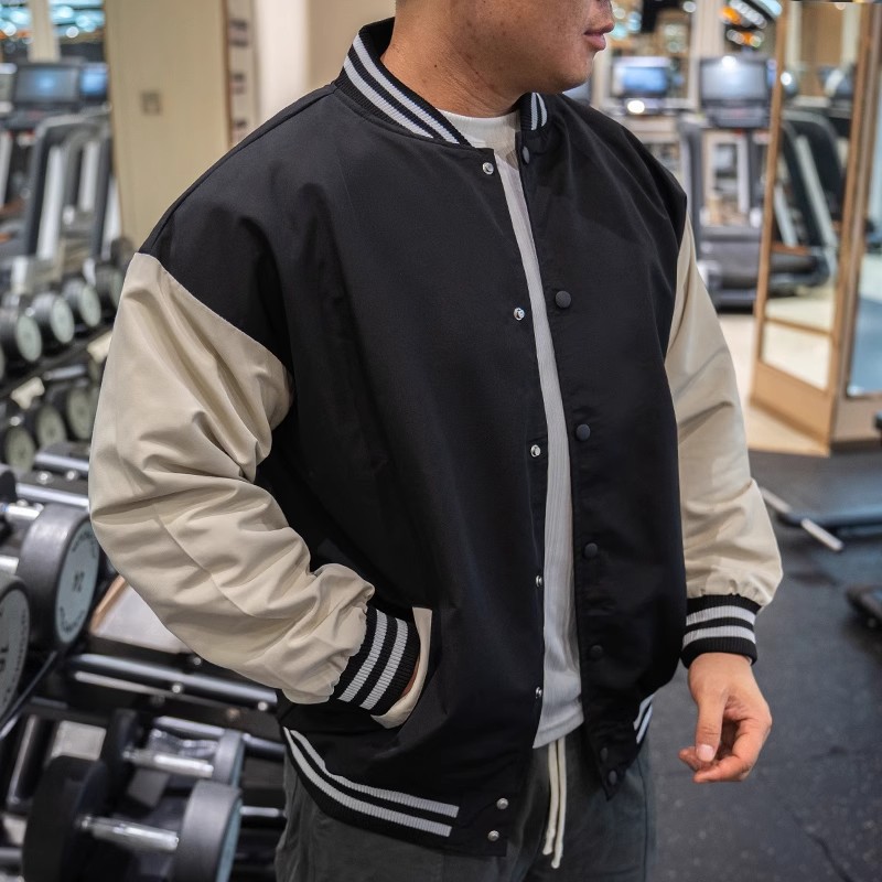 秋冬潮流棒球服长袖外套男宽松百搭美式纽扣撞色立领学生休闲上衣