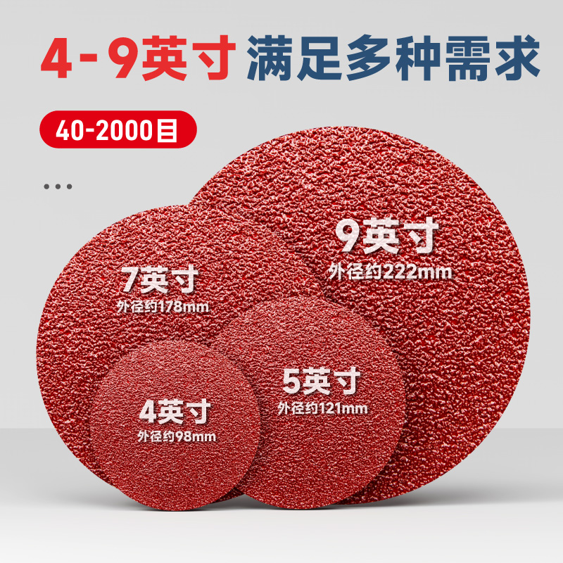 植绒砂纸4寸5寸7寸9寸圆形自粘背绒片木工干磨金属打磨机抛光沙纸