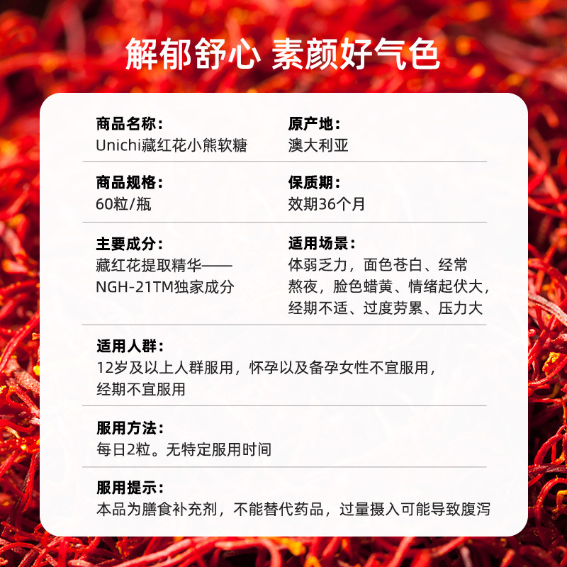 【自营】Unichi藏红花小熊软糖补气血美颜舒缓情绪零糖舒压解郁