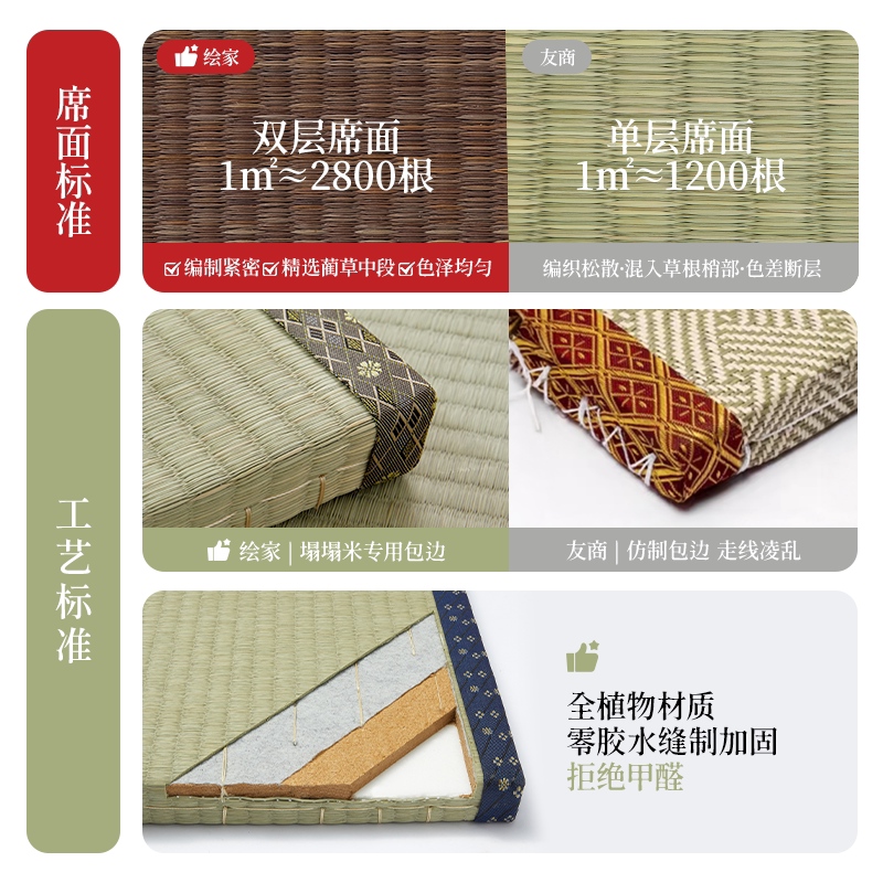 绘家「棕摩卡」无边榻榻米日式定制地铺睡垫椰棕芯床垫塌塌米
