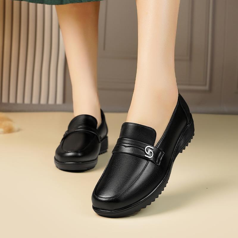 品牌真皮软底中老年妈妈鞋平底老人皮鞋老年单鞋女大尺码女鞋41-4