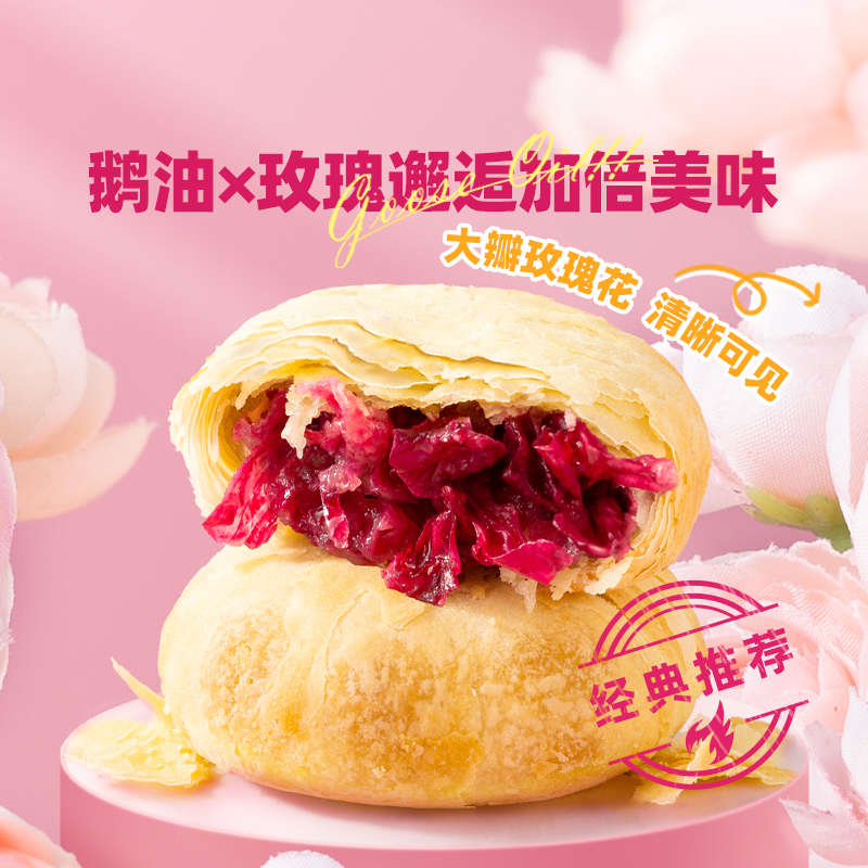 潘祥记鹅油玫瑰鲜花饼中式糕点400g下午茶伴手礼休闲零食云南特产