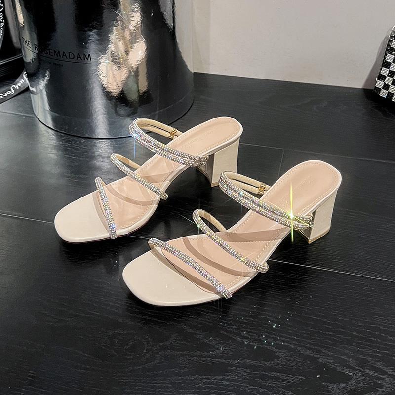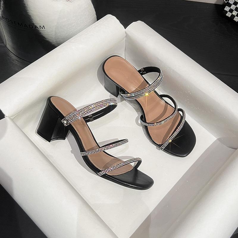 水钻高跟鞋2025夏季新款罗马中跟粗跟两穿凉拖鞋仙女风大码凉鞋女