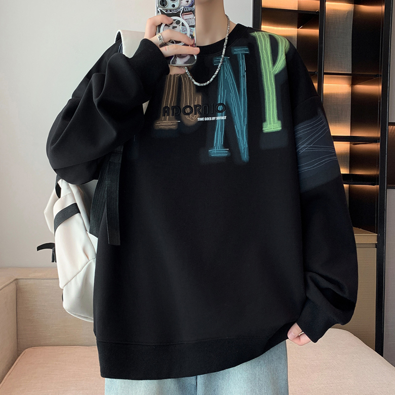 美式圆领卫衣套装男生青少年一整套春秋季穿搭牛仔裤男学生两件套